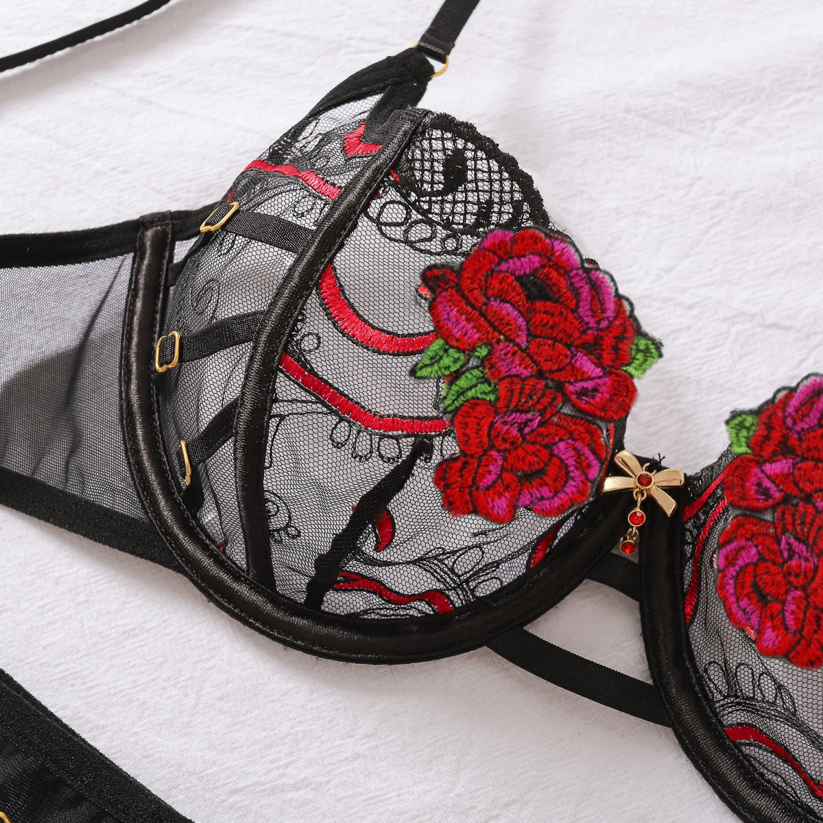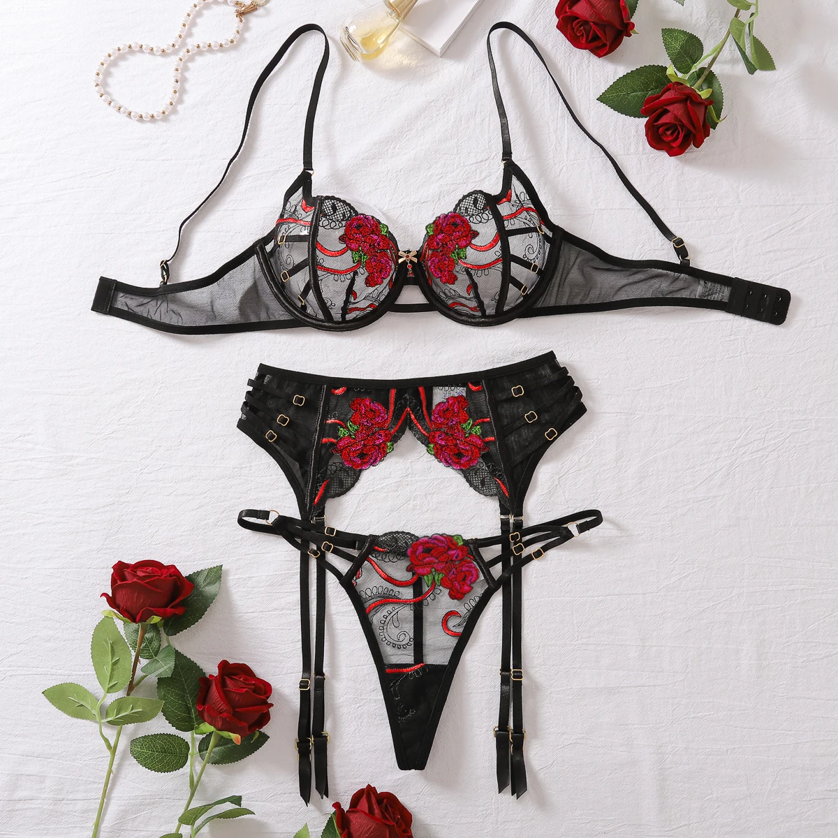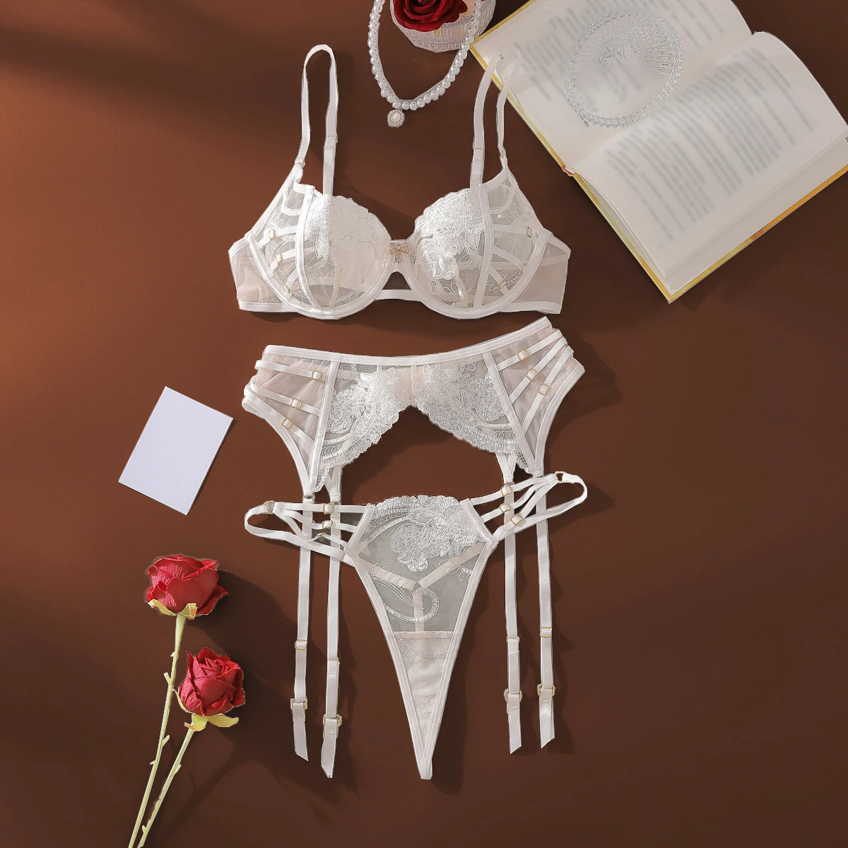 MUZISKAT 2025 Sexy High End Underwear Set Womens Embroidered Lace Comfortable Flower Pattern Underwear Underwear 3-Piece Set