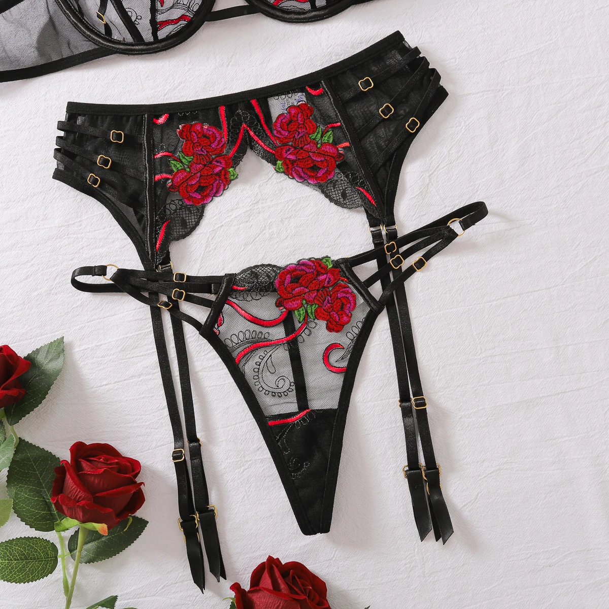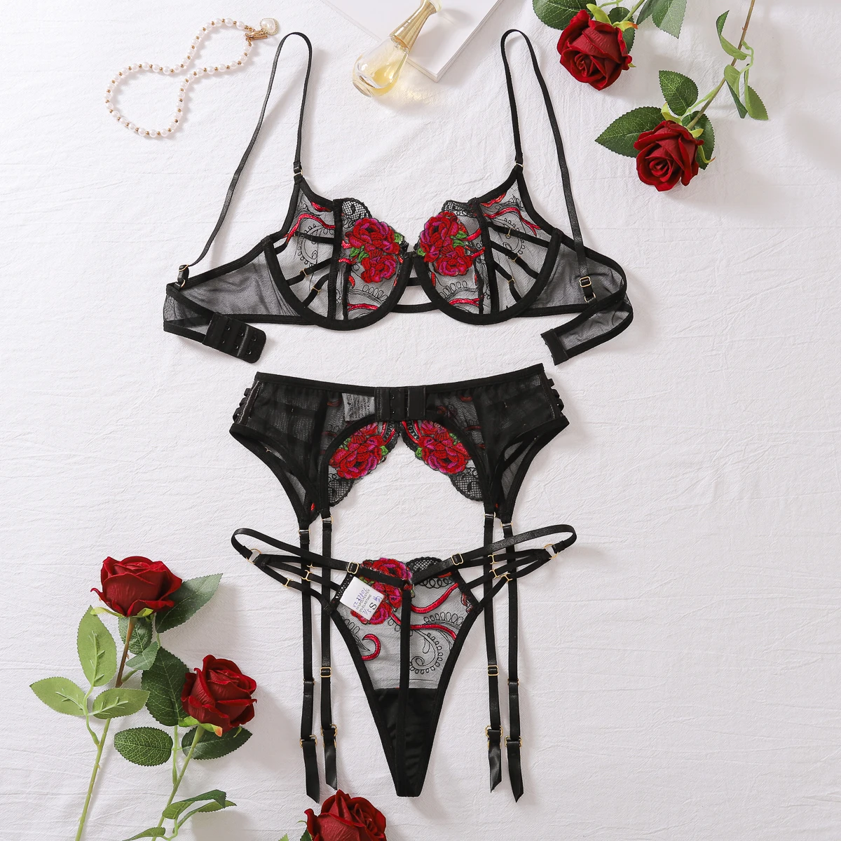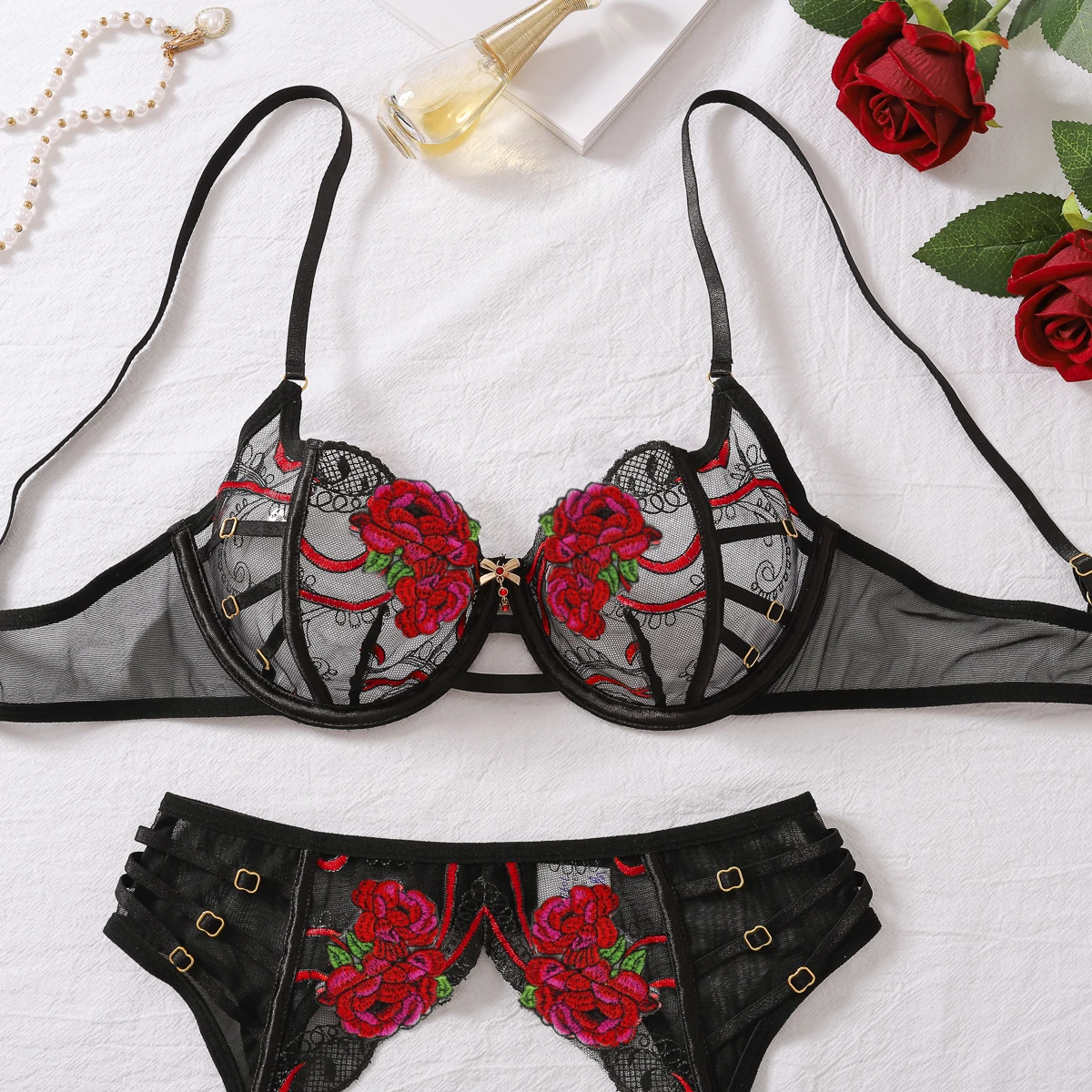MUZISKAT 2025 Sexy High End Underwear Set Womens Embroidered Lace Comfortable Flower Pattern Underwear Underwear 3-Piece Set