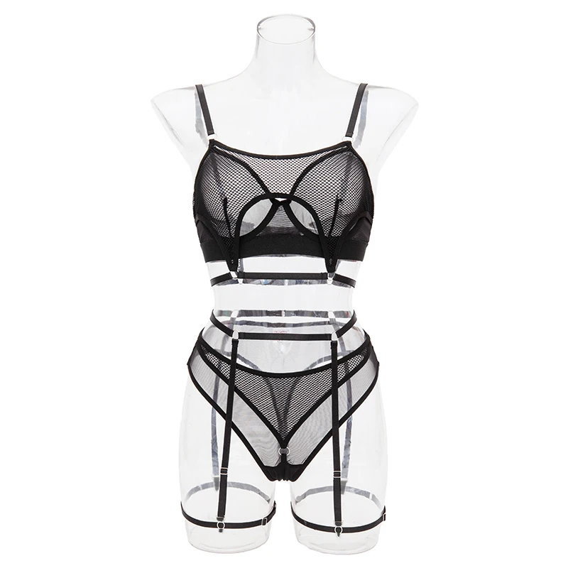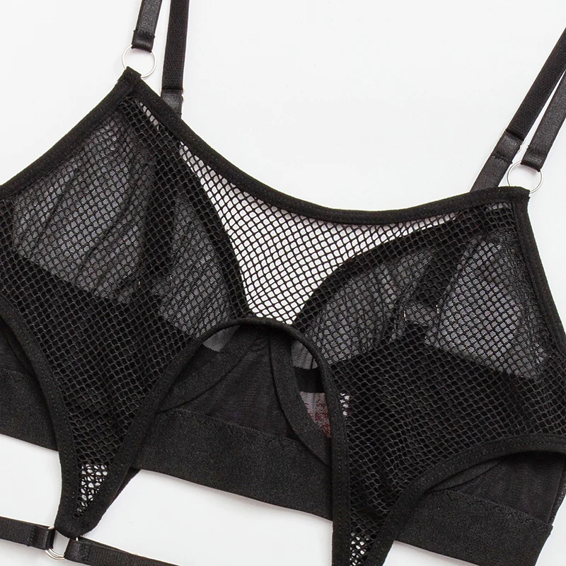 MUZISKAT 2025 Summer New Fishing Net Hollowed Out Erotic Suit Fashion Steel Ring Gathered Sexy Underwea