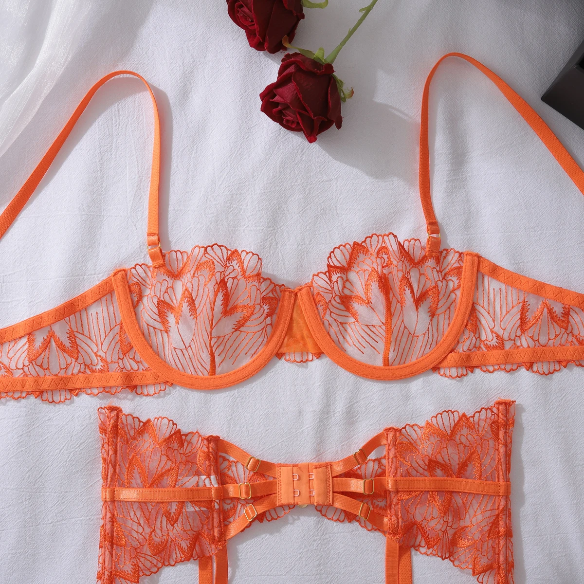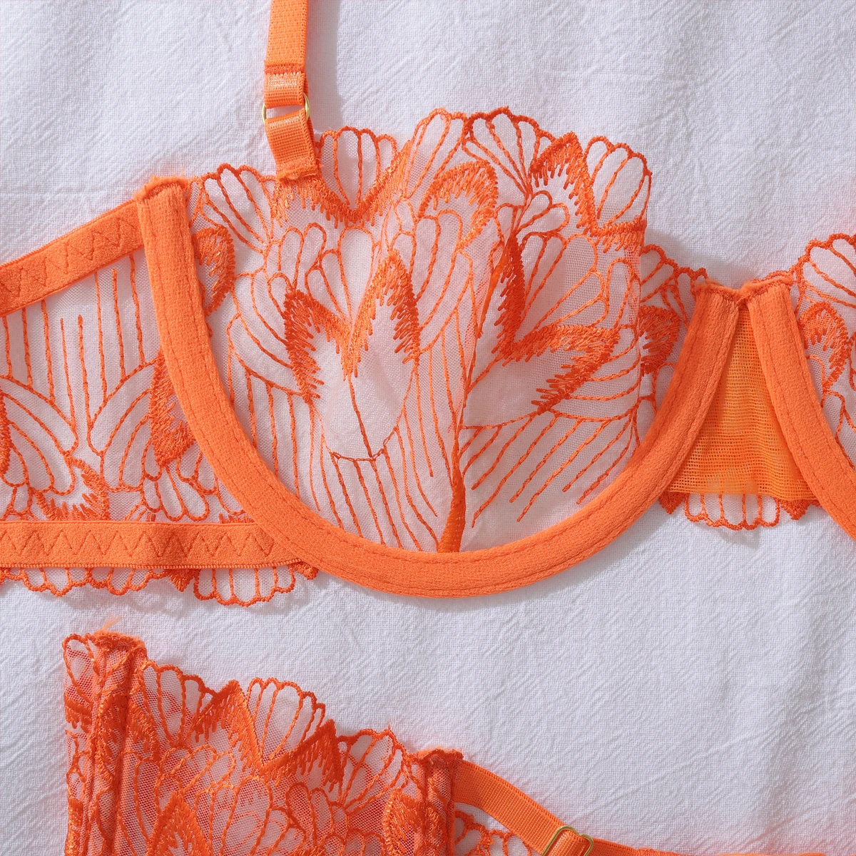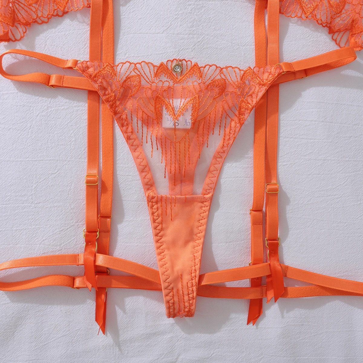 MUZISKAT 2025 Summer New Product Women’s Special Fashion Pattern Embroidered Transparent backless Sexy Underwear 4-piece Set