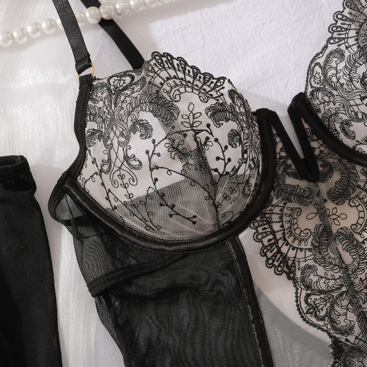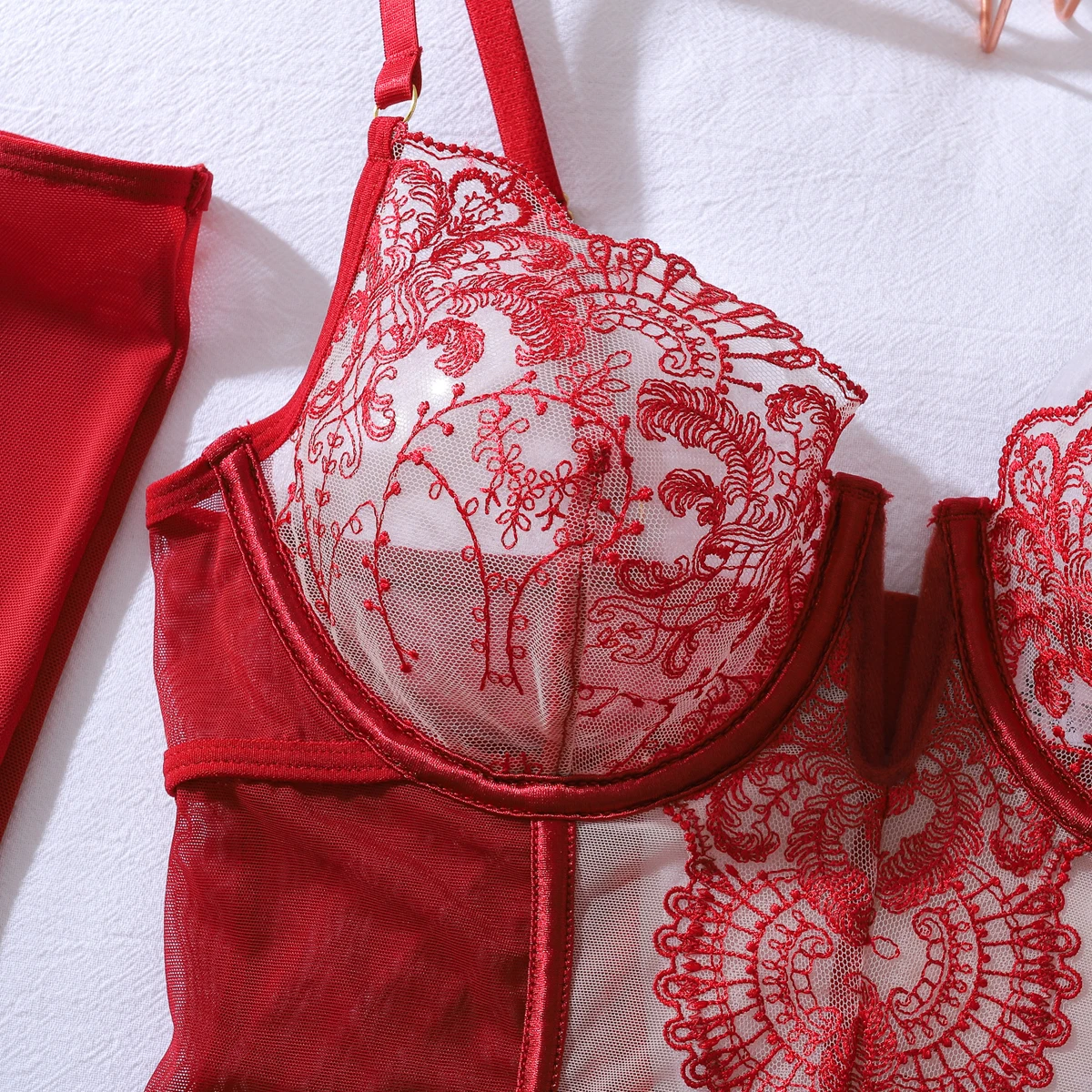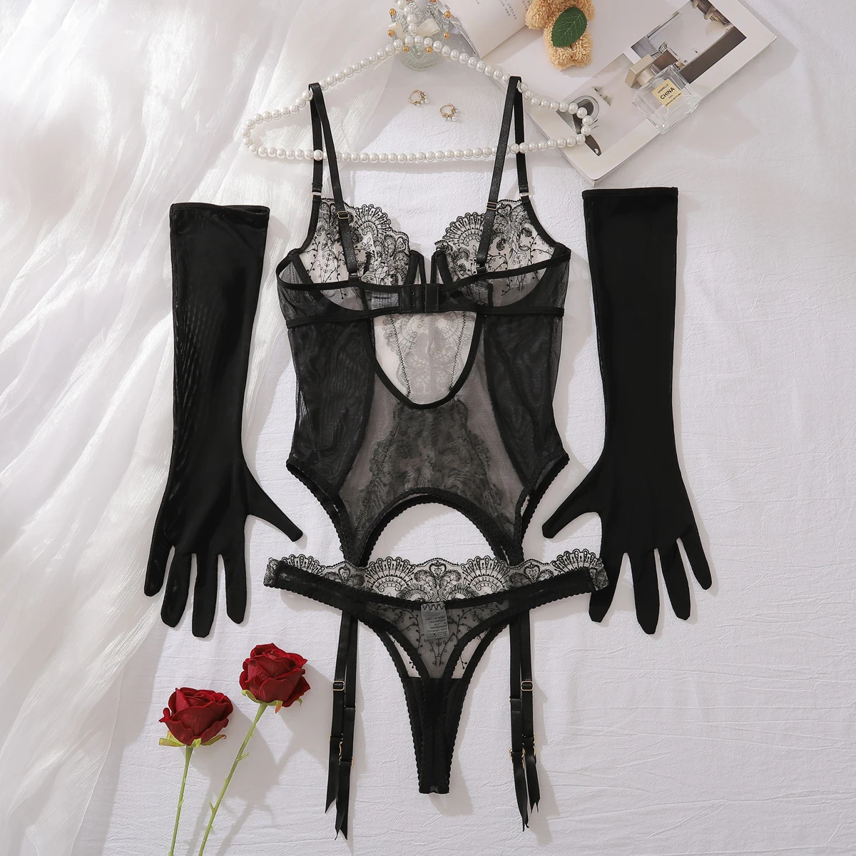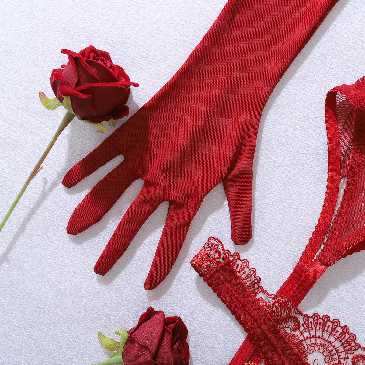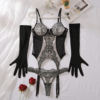MUZISKAT 2025 Tight Women’s Underwear Super Sexy Gloves V-neck Lace Calling Romantic Spicy 3-Piece Underwear Set