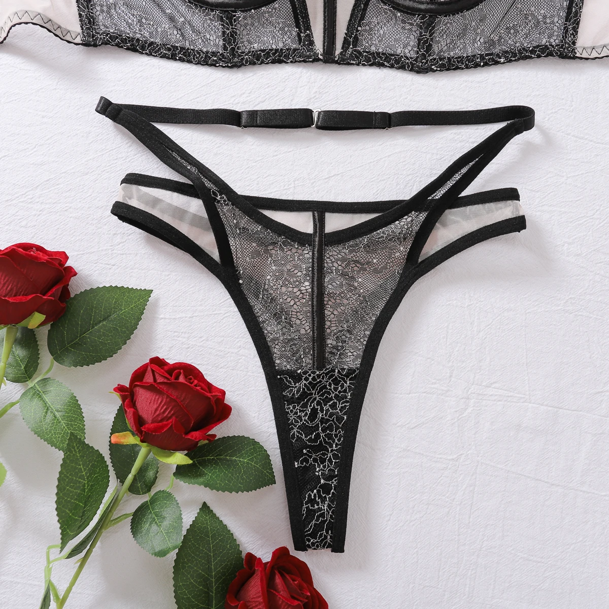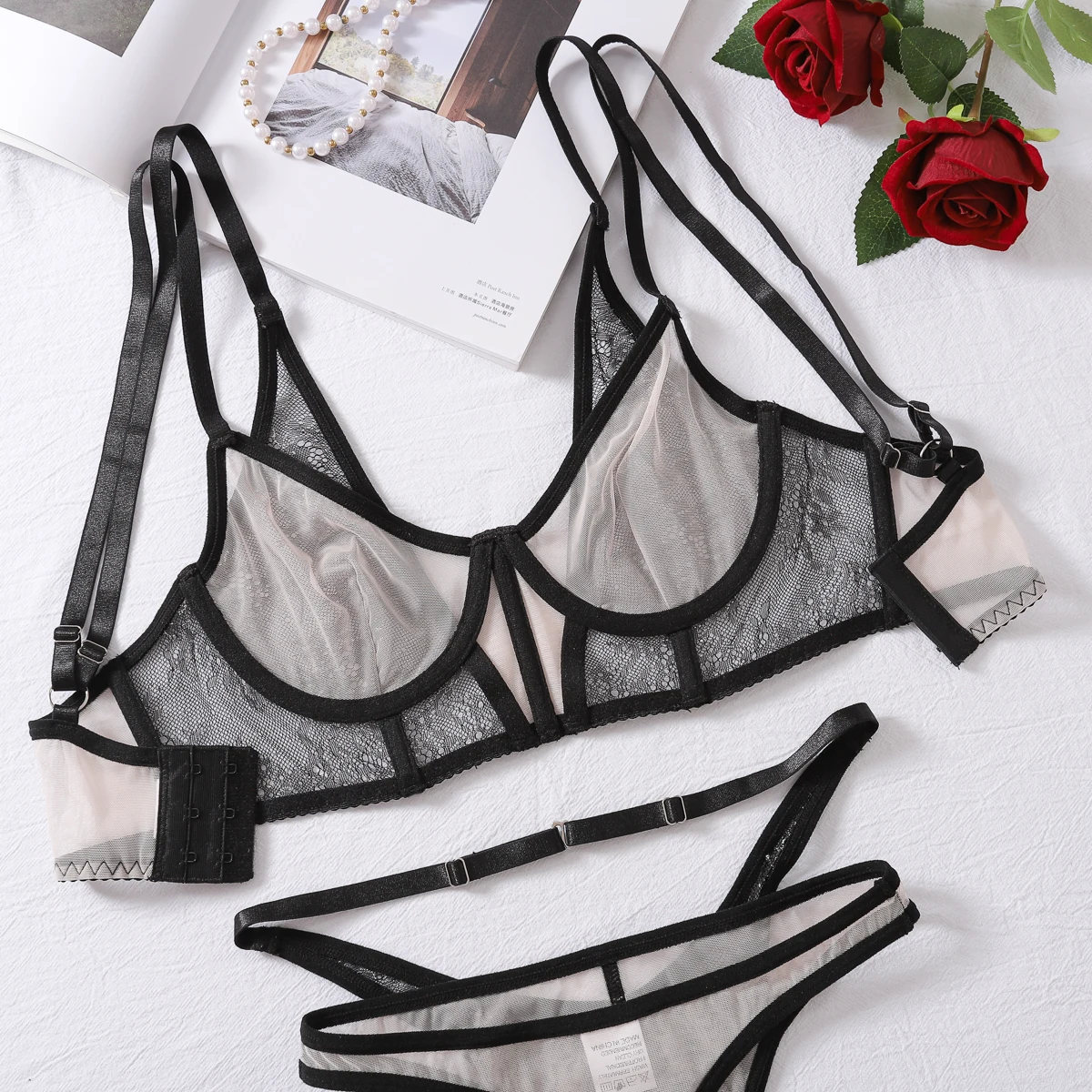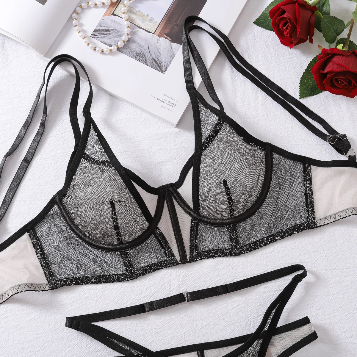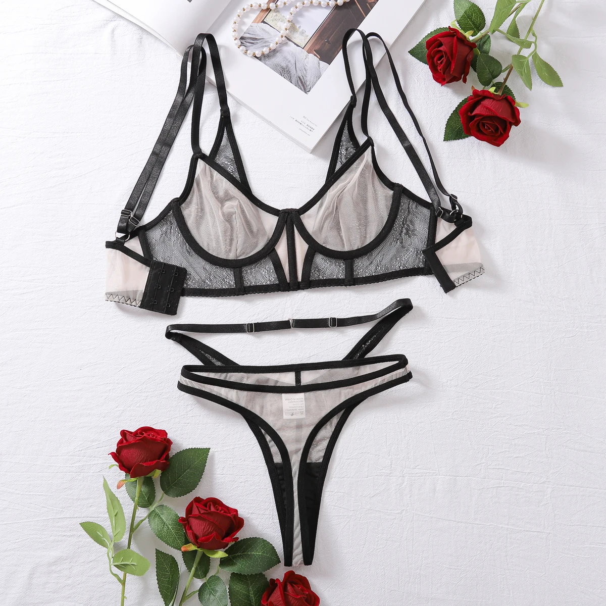 MUZISKAT Embroidered Erotic Mesh Sheer Spliced Sexy Party Lingerie two-piece Set Erotic Costume Women Sexy Lingerie