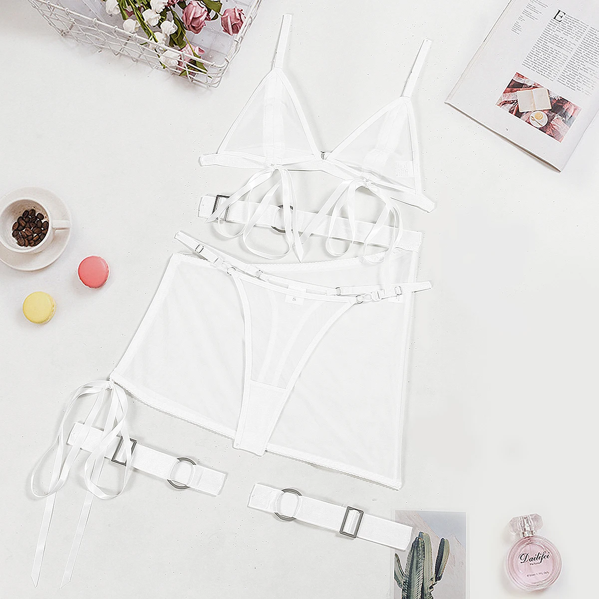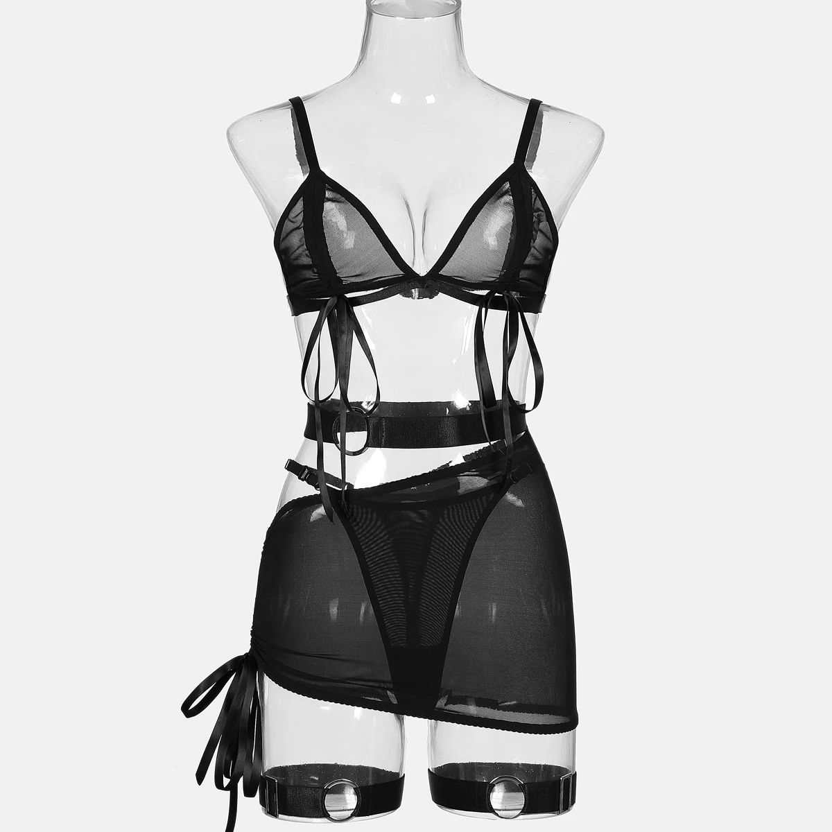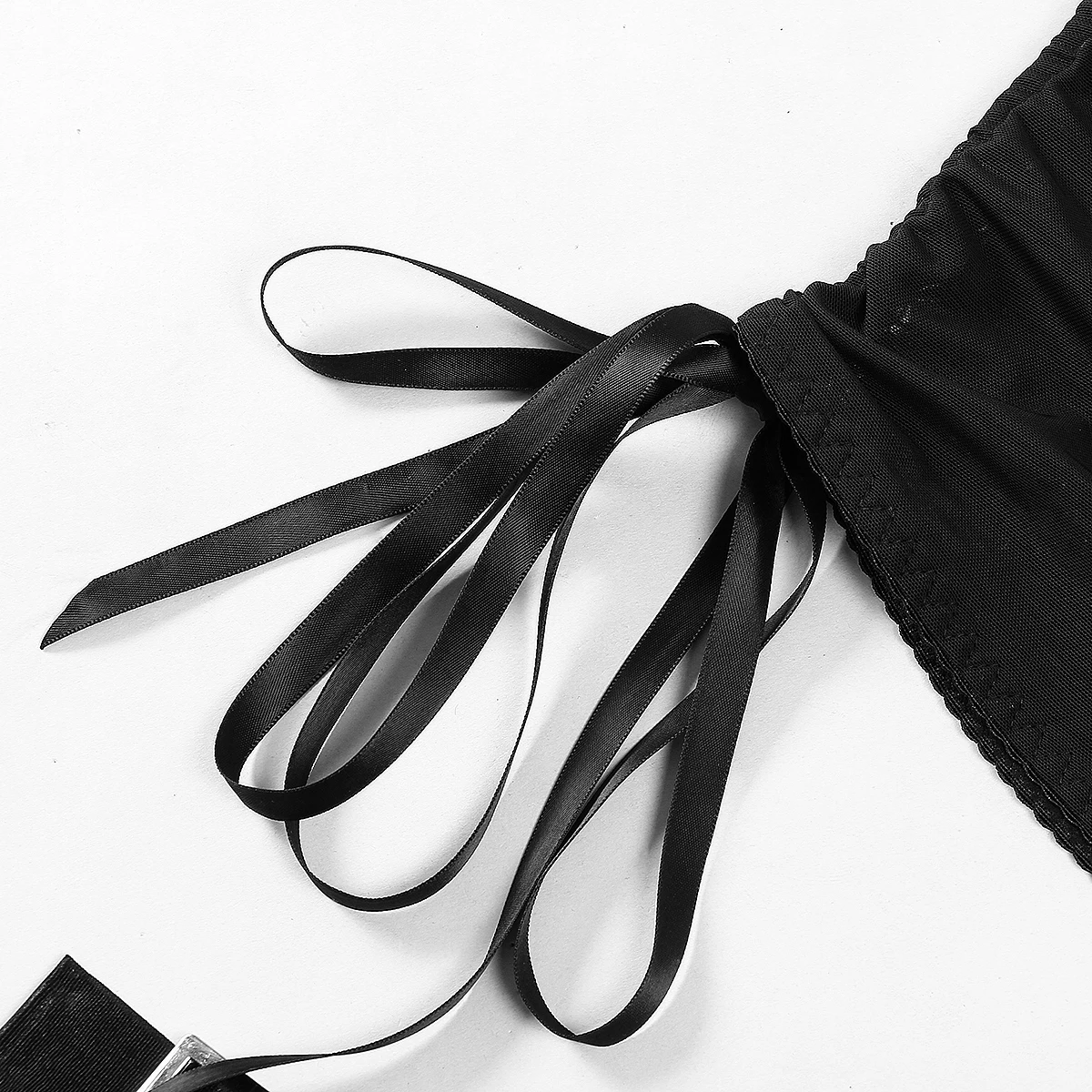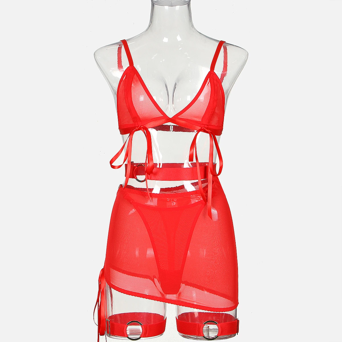 MUZISKAT Fashion New 2025 Women’s Sexy Mesh Drawstring Design Comfortable Erotic Lingerie Suit Four-Piece Set
