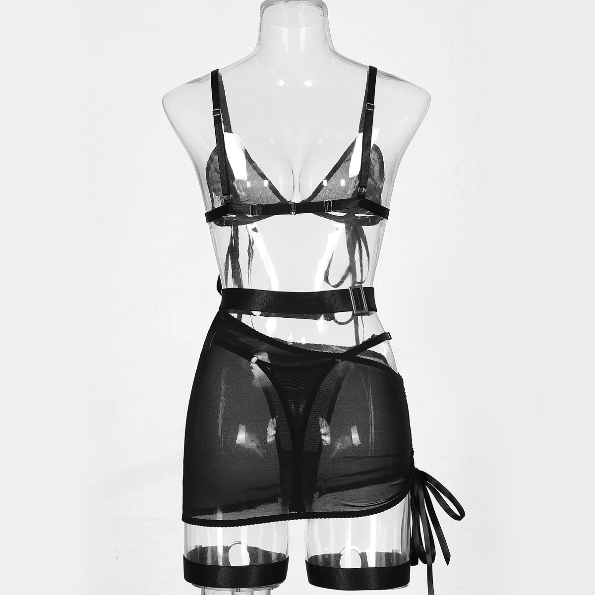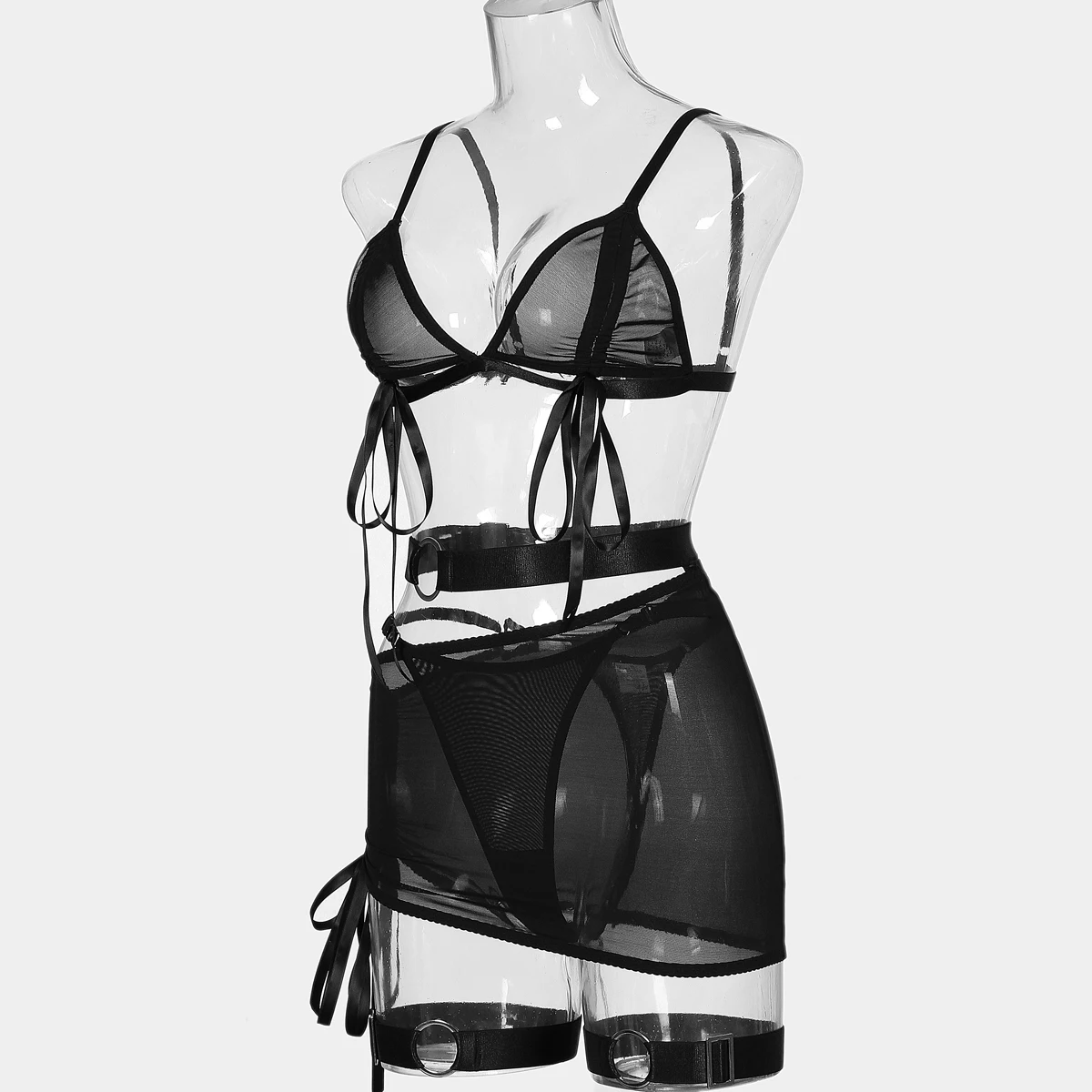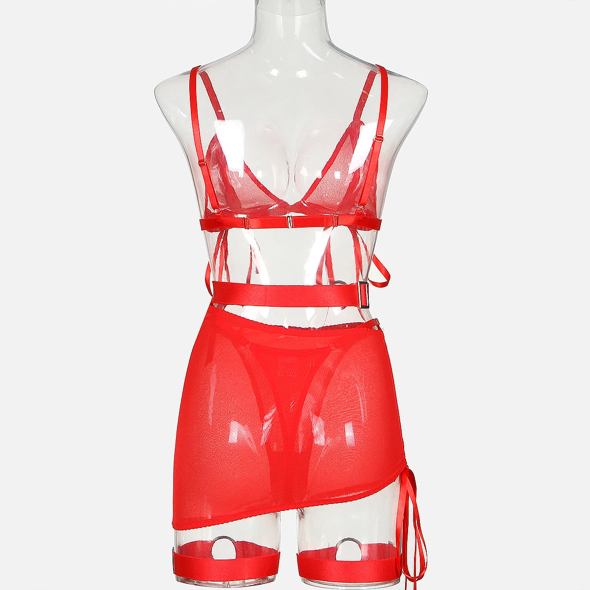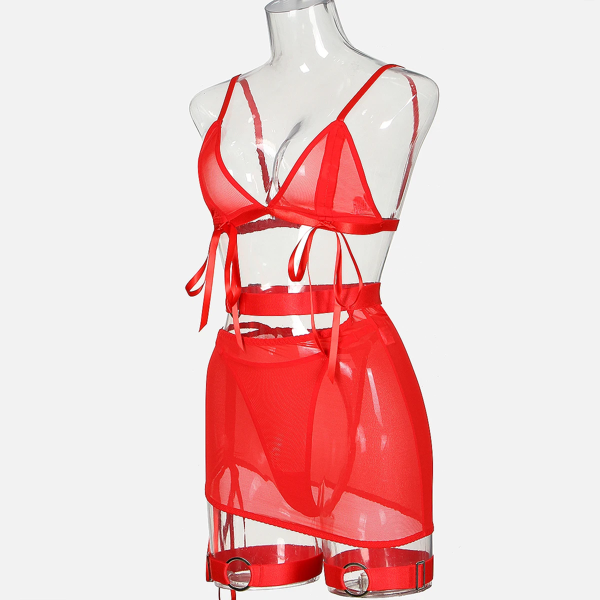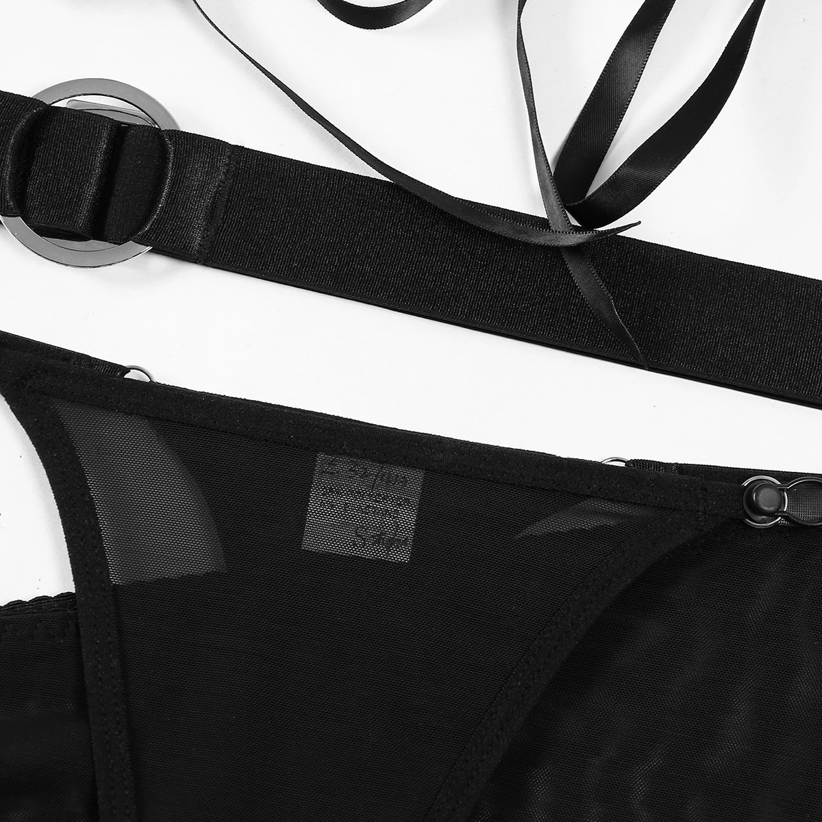 MUZISKAT Fashion New 2025 Women’s Sexy Mesh Drawstring Design Comfortable Erotic Lingerie Suit Four-Piece Set