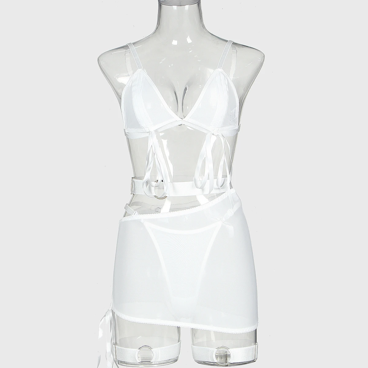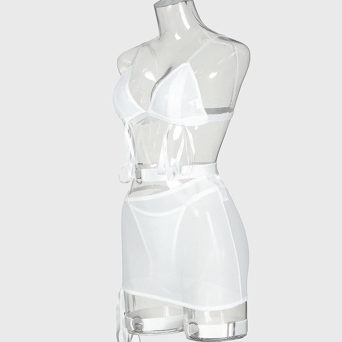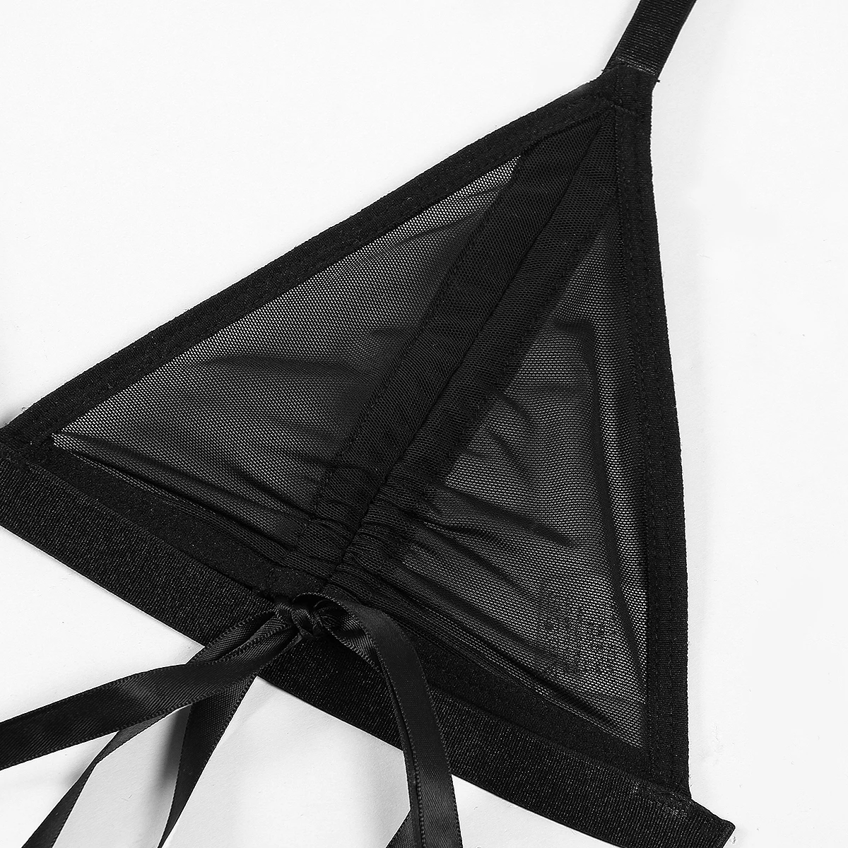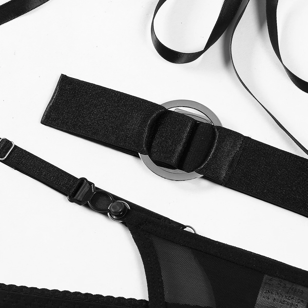 MUZISKAT Fashion New 2025 Women’s Sexy Mesh Drawstring Design Comfortable Erotic Lingerie Suit Four-Piece Set