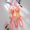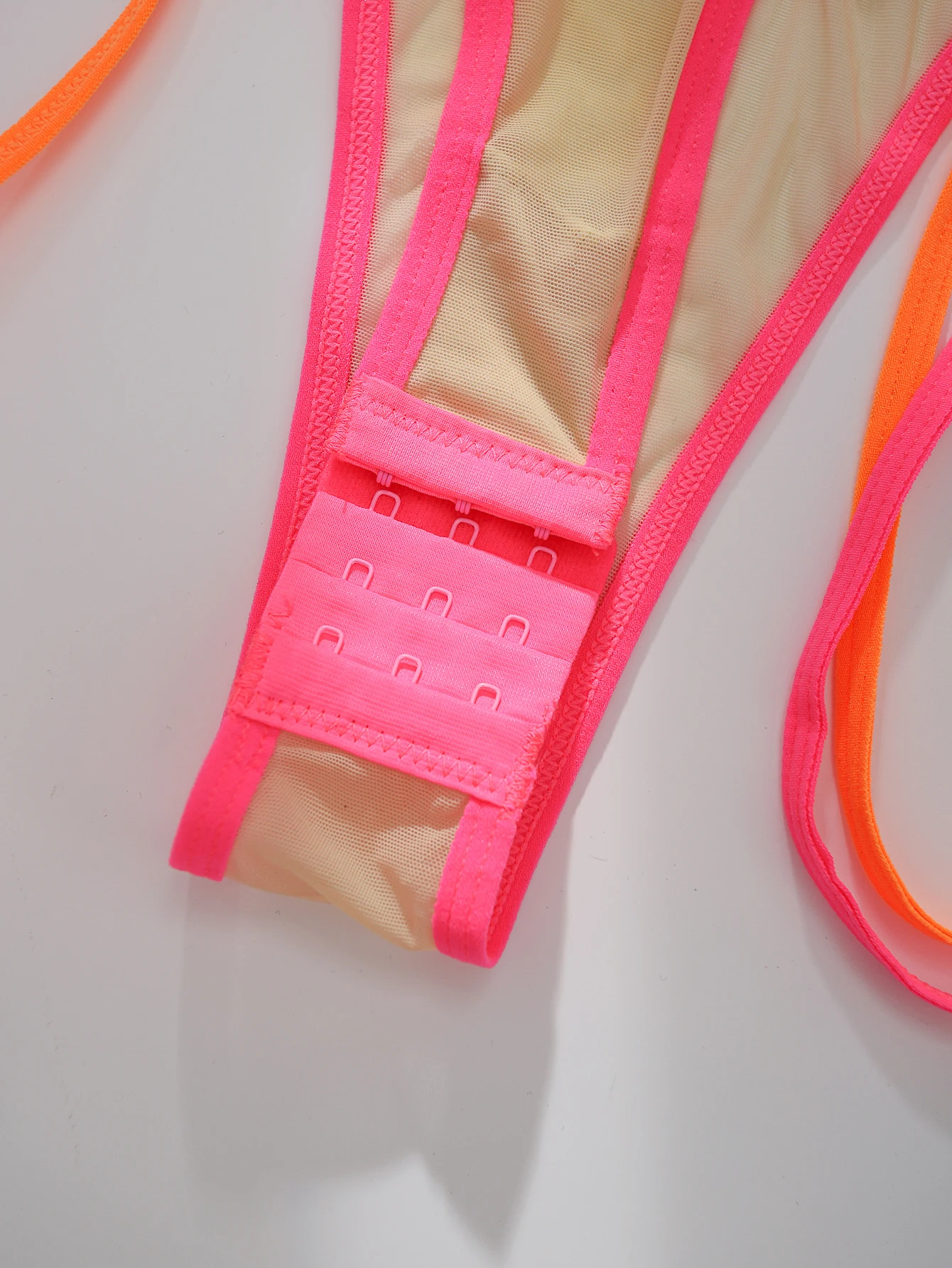MUZISKAT High-End Quality 2024 Sexy Colour Clashing See-Through Mesh Body Shaping Backless Halter Bodysuit Garter Set Onlyfans