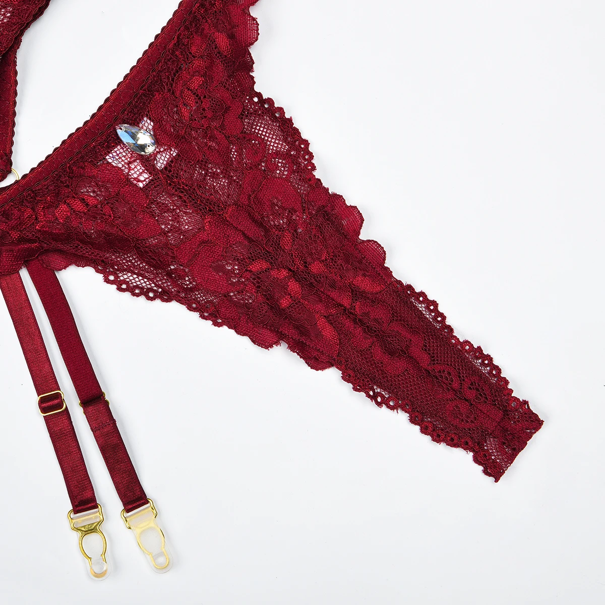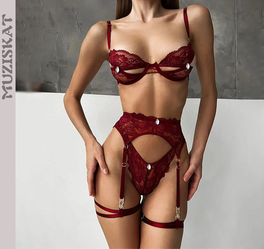 MUZISKAT Sexy Fashion Women’s Erotic Four-Piece Set Of New Water Drop Diamond Grain Sexy Lace Hollowing Lingerie Set Onlyfans