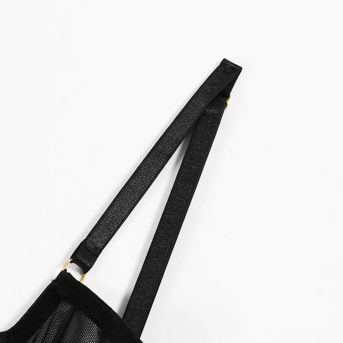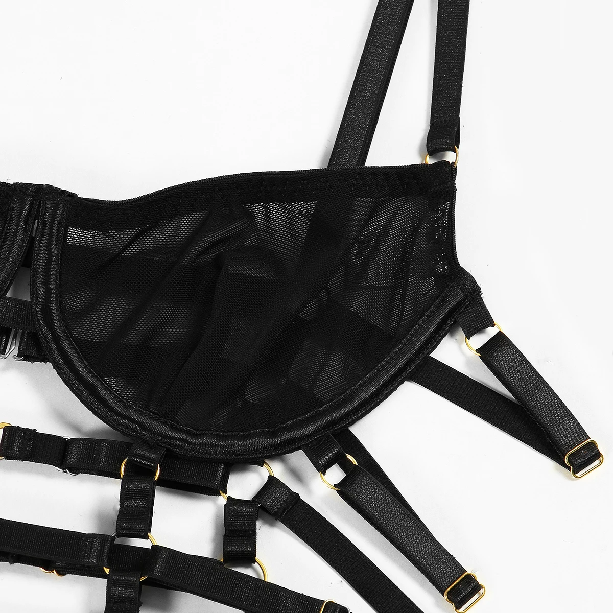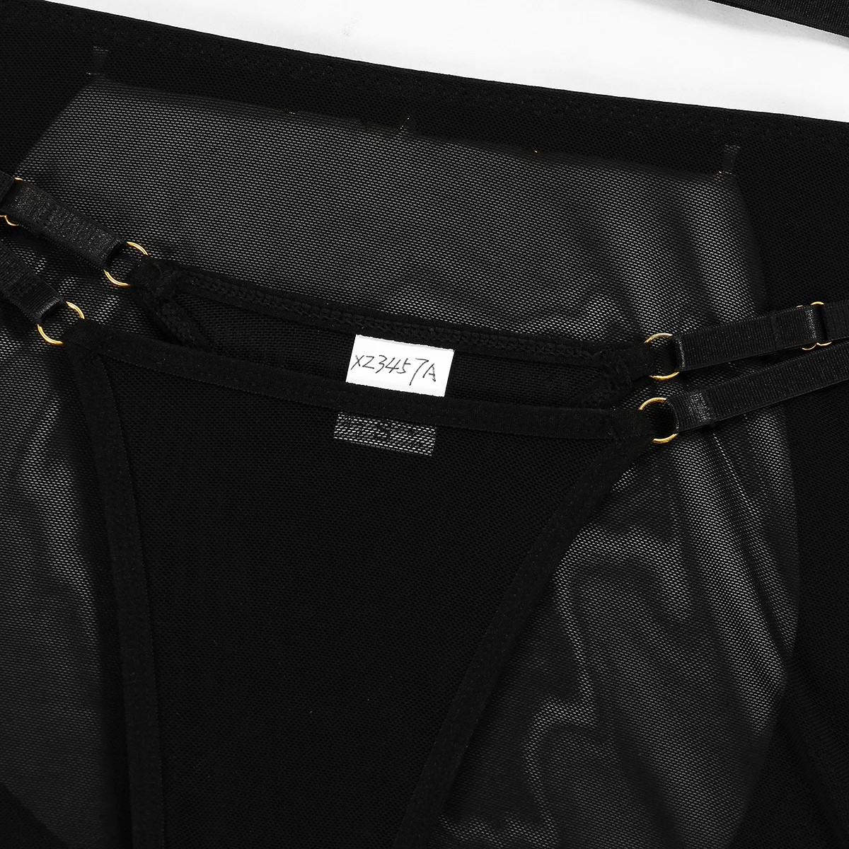 MUZISKAT Sexy Shapewear Short Dress Set Comfortable Mesh Skeleton Straps Bra Hollow Backless Erotic Lingerie three-piece Set