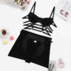 MUZISKAT Sexy Shapewear Short Dress Set Comfortable Mesh Skeleton Straps Bra Hollow Backless Erotic Lingerie three-piece Set