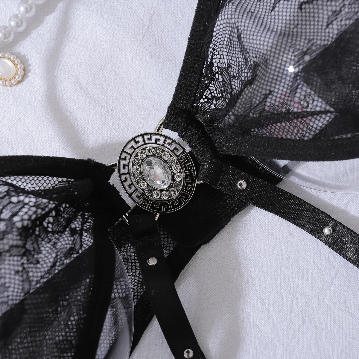 MUZISKAT Strapless Transparent Hollow Lace Lace Casual Elegant Maid Sexy Temptation Home Clothes 3-Piece Set