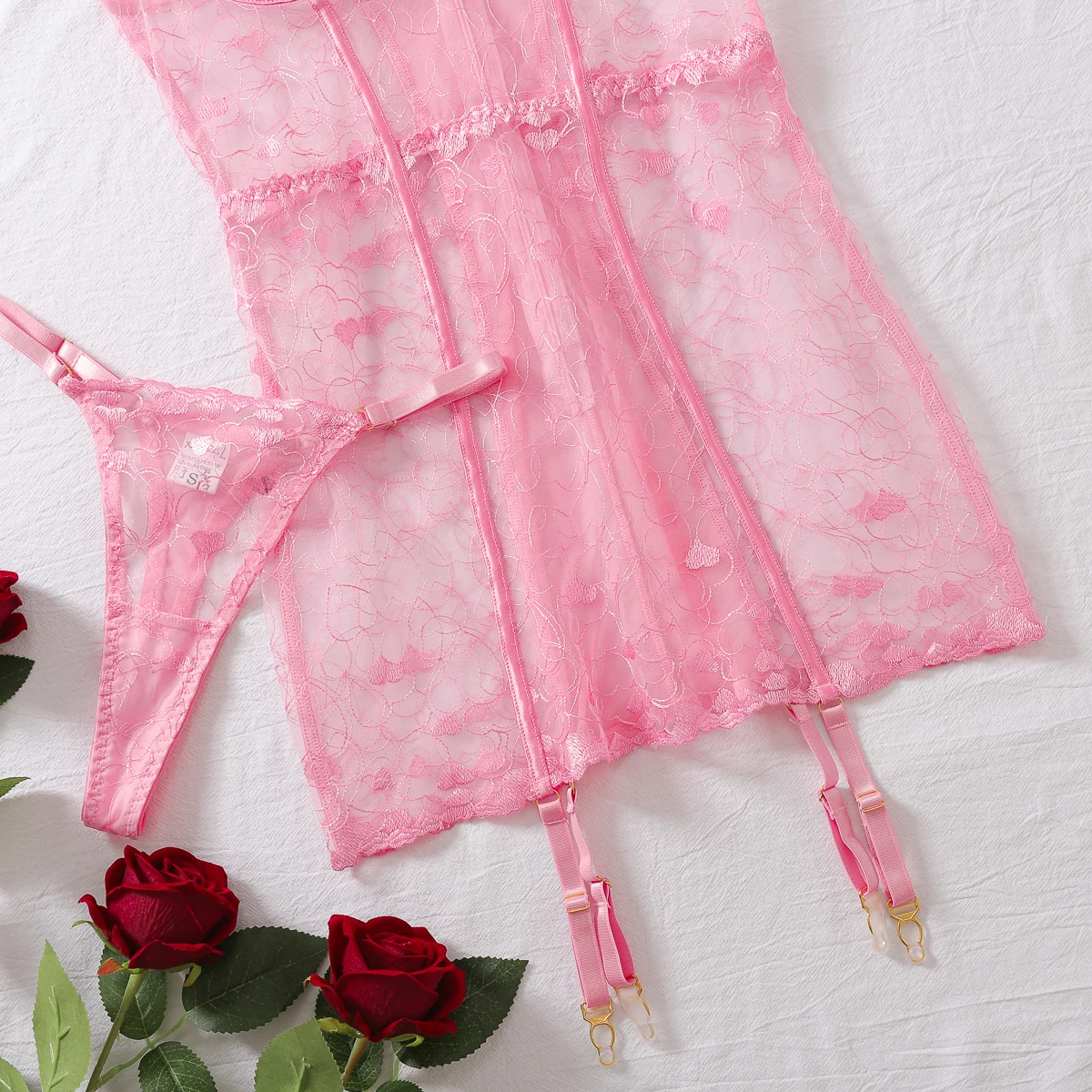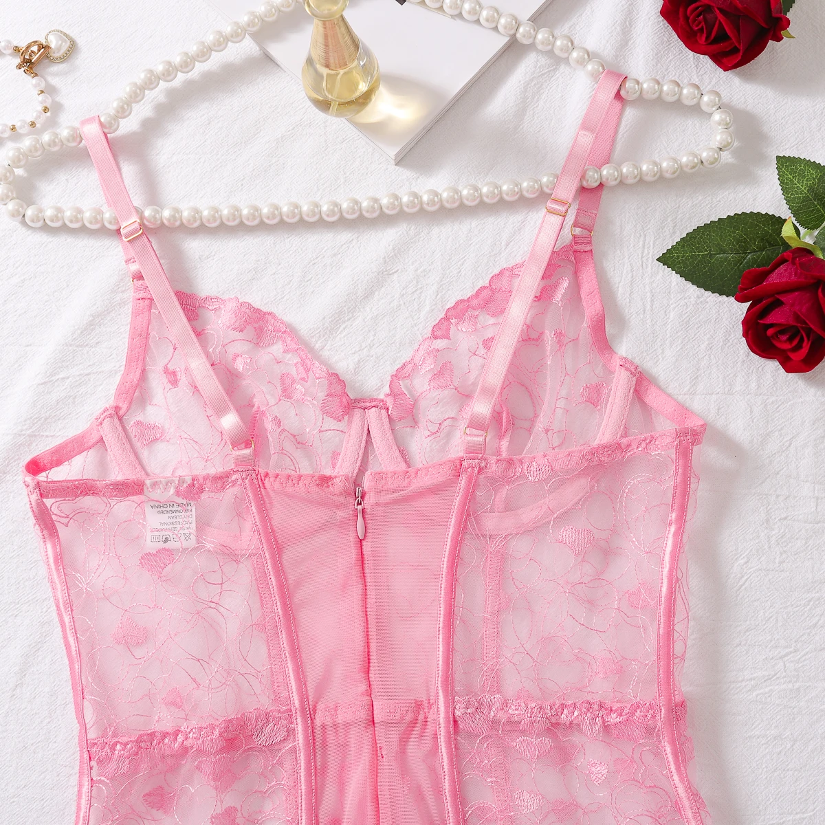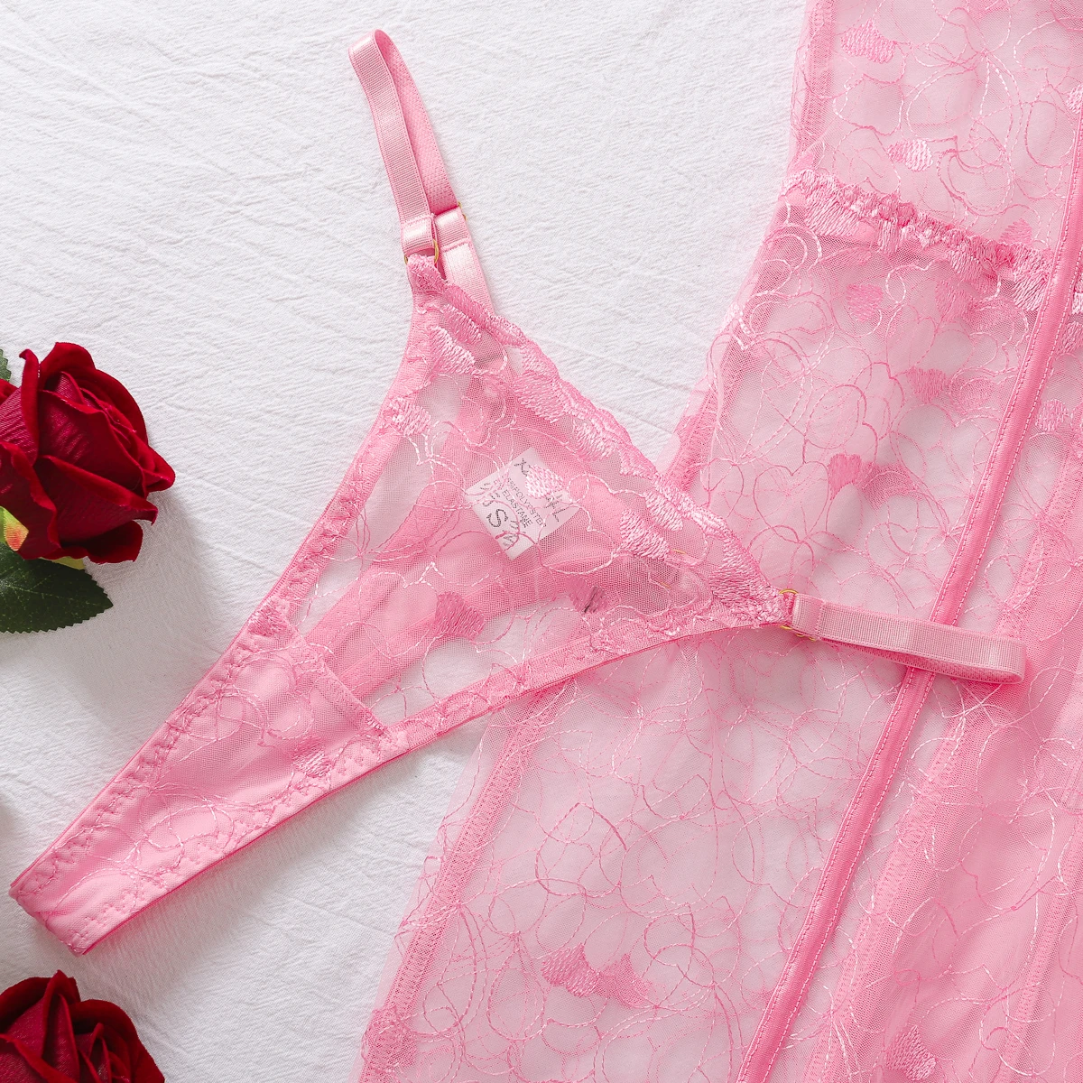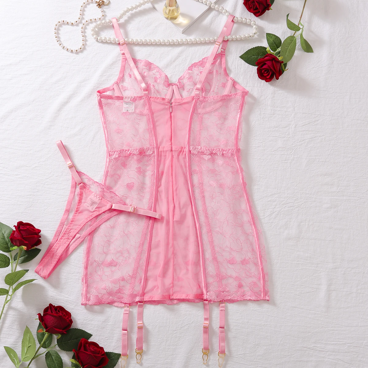 MUZISKAT Summer New Transparent Lace Bound Embroidered Beautiful Slim Skirt Sexy Hip Stretch Underwear two-piece Set
