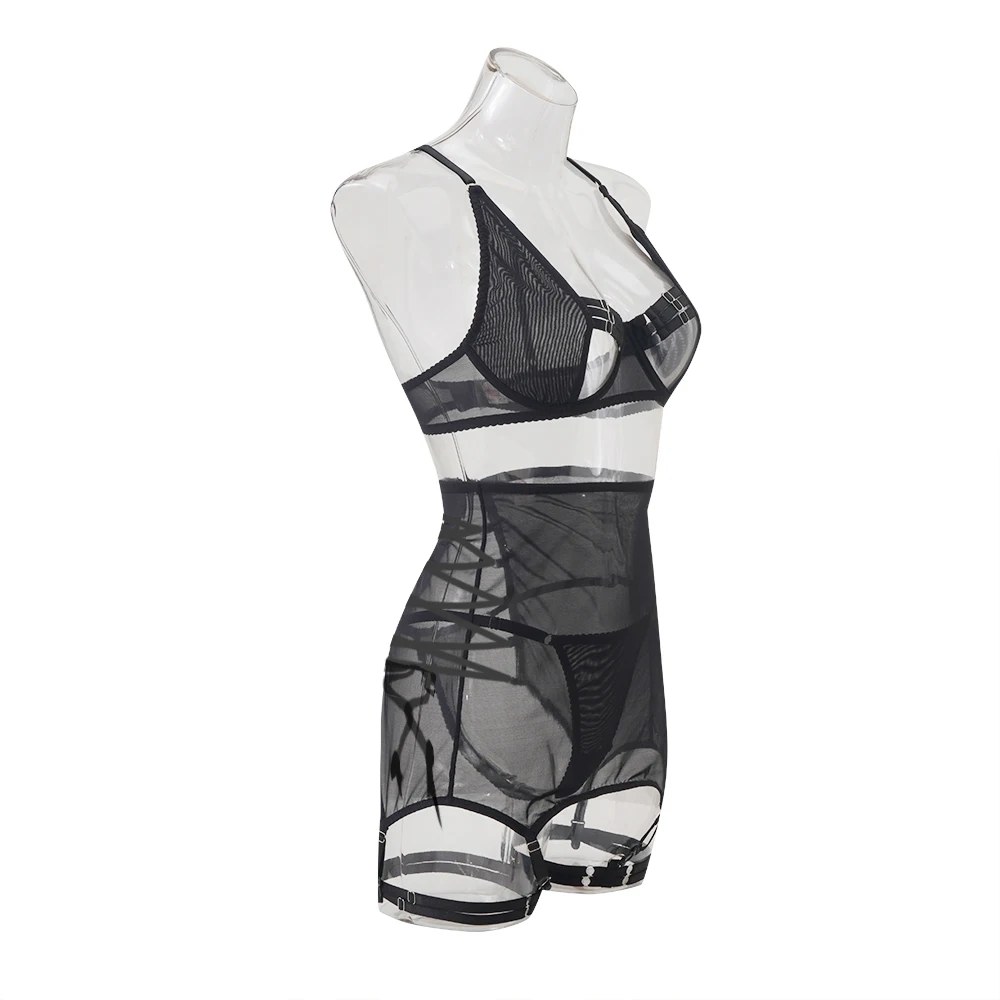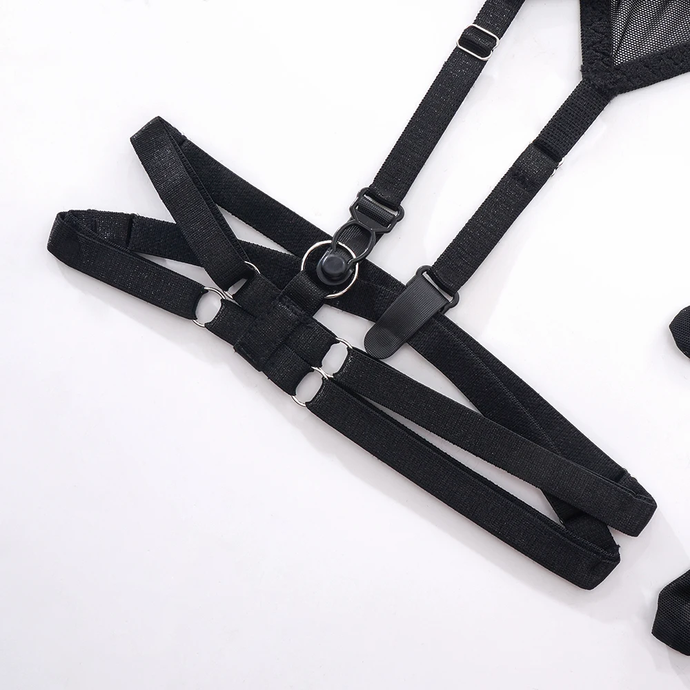 MUZISKAT Summer Sizzler new women’s sexy strappy see-through mesh lingerie four-piece set