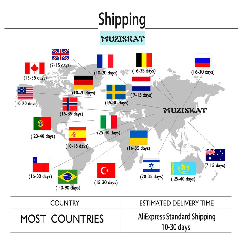 Packages from our warehouse in China will be shipped by ePacket or EMS depending on the weight and size of the product. Packages shipped from our US warehouse are shipped through USPS.