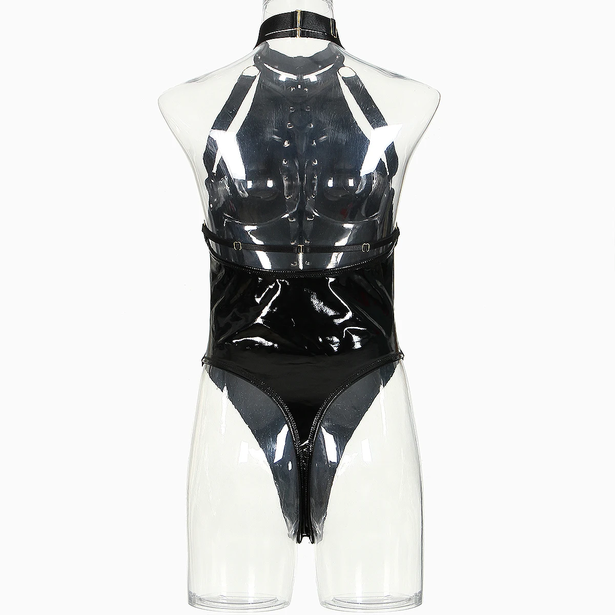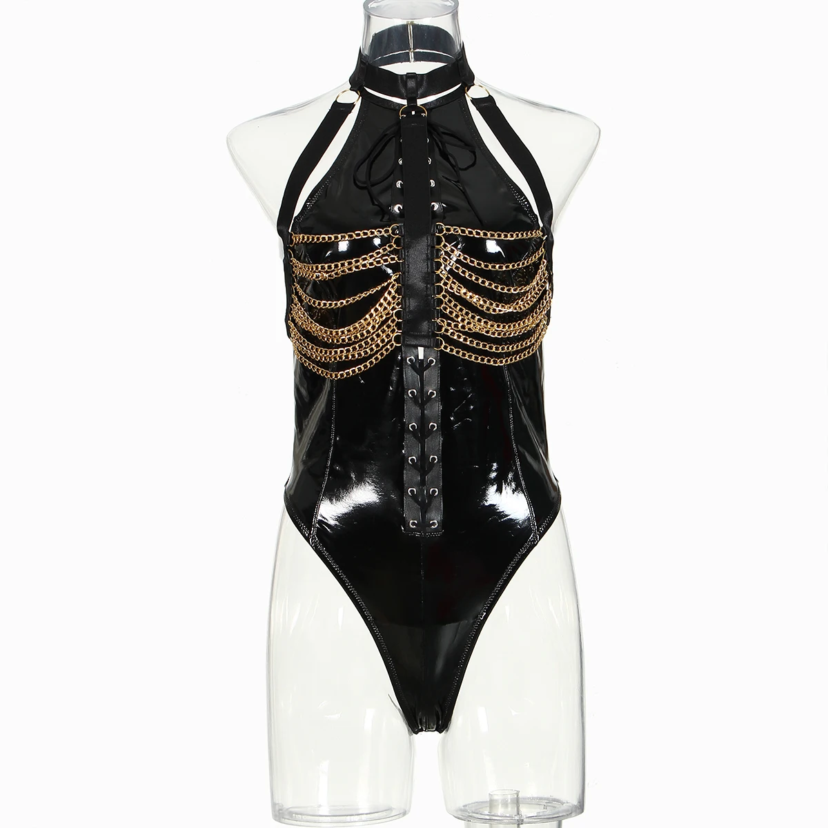 MUZISKAT Womens Sexy Sleeveless Temptation Binding Metal Chain Lacquer Uniform Passionate Sex Underwear Jumpsuit