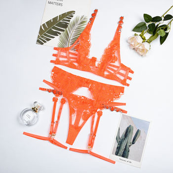 MUZISKAT 2024 Luxury Sexy Women’s Lingerie Sheer Mesh Bra Floral Embroidery Lingerie Set Exotic four-piece Set