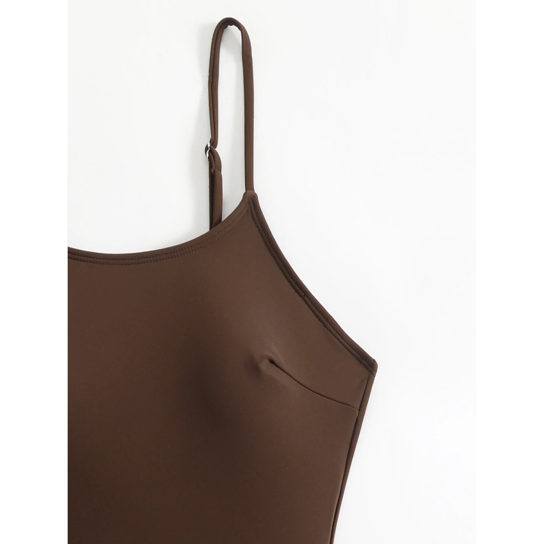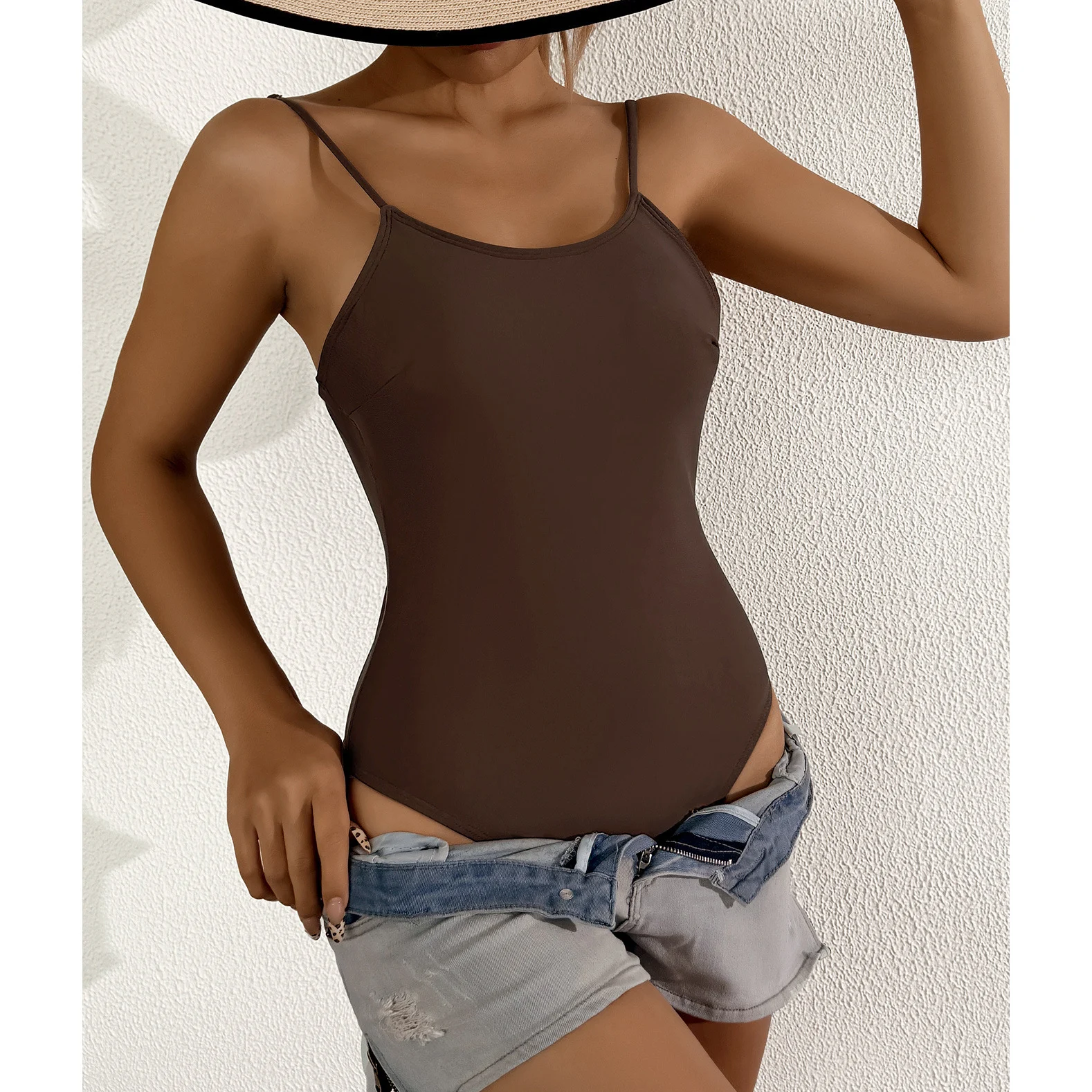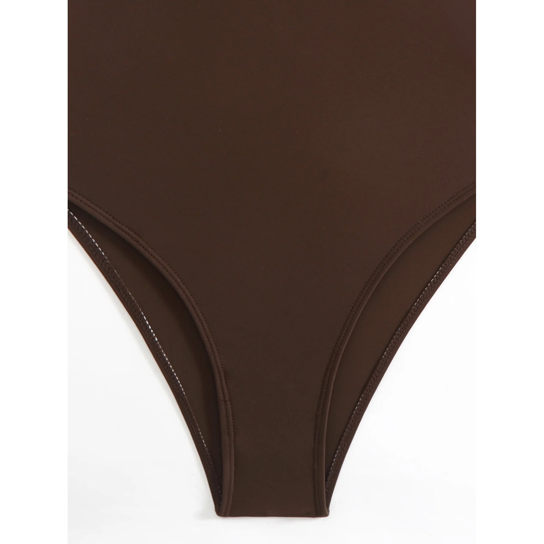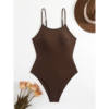 New 2025 Sexy Backless High Leg Cut Women Swimwear One Piece Swimsuit Female Padded Solid Coffee Bather Bathing Suit Swim V7089