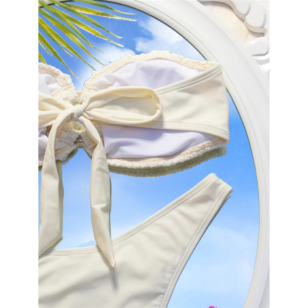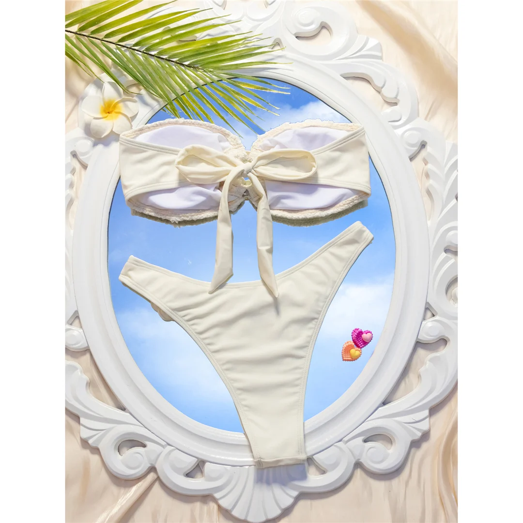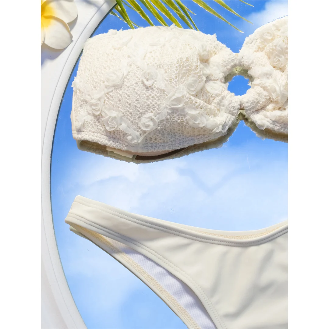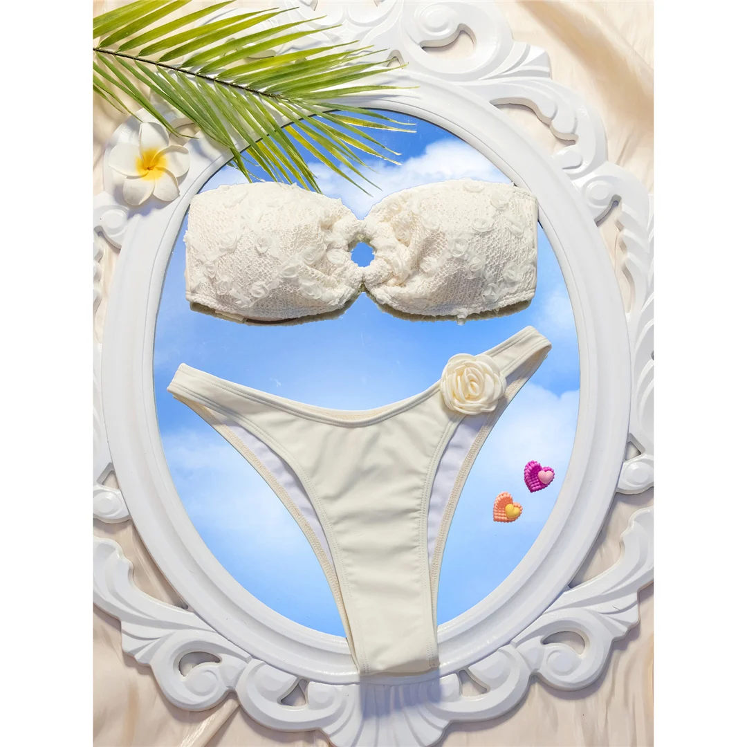 New 3D Flowers Bandeau High Leg Cut Bikini Female Swimsuit Women Swimwear Two-pieces Bikini set Bather Bathing Suit Swim V6225