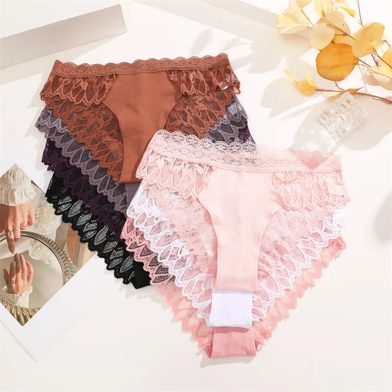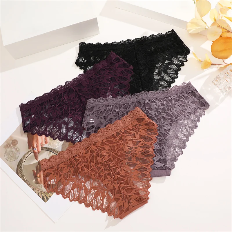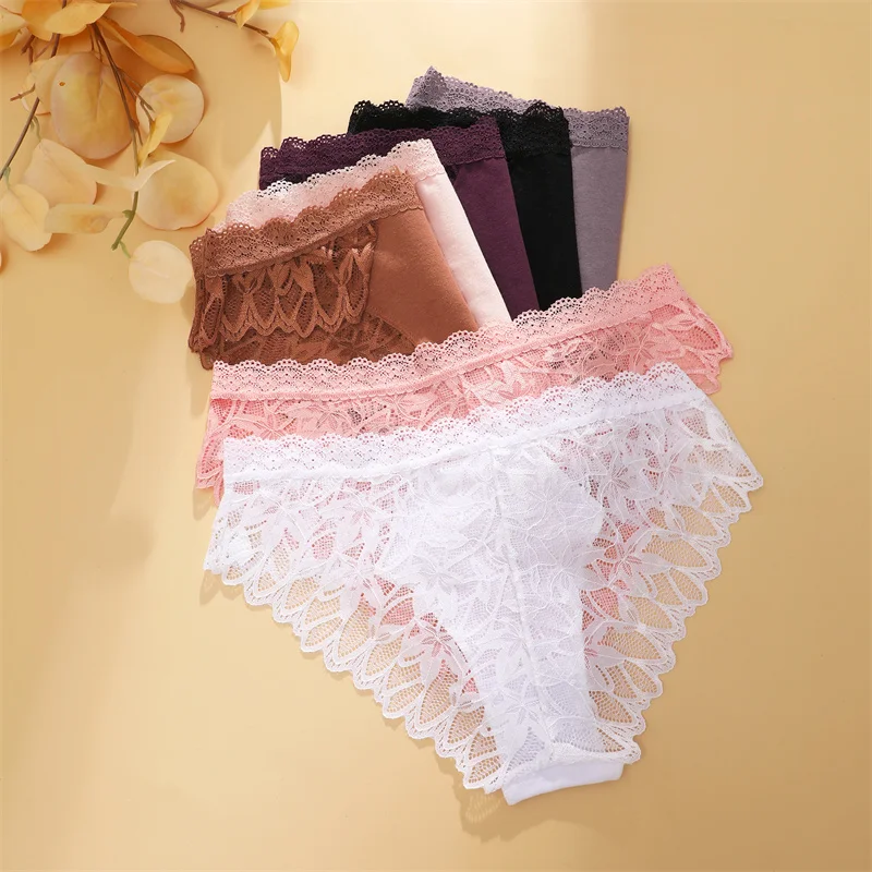New 7Pcs/Set Women’s Sexy Lace Panties Solid Color Floral Briefs Set Summer Ultra-thin Transparent Underpants Fashion Lingerie