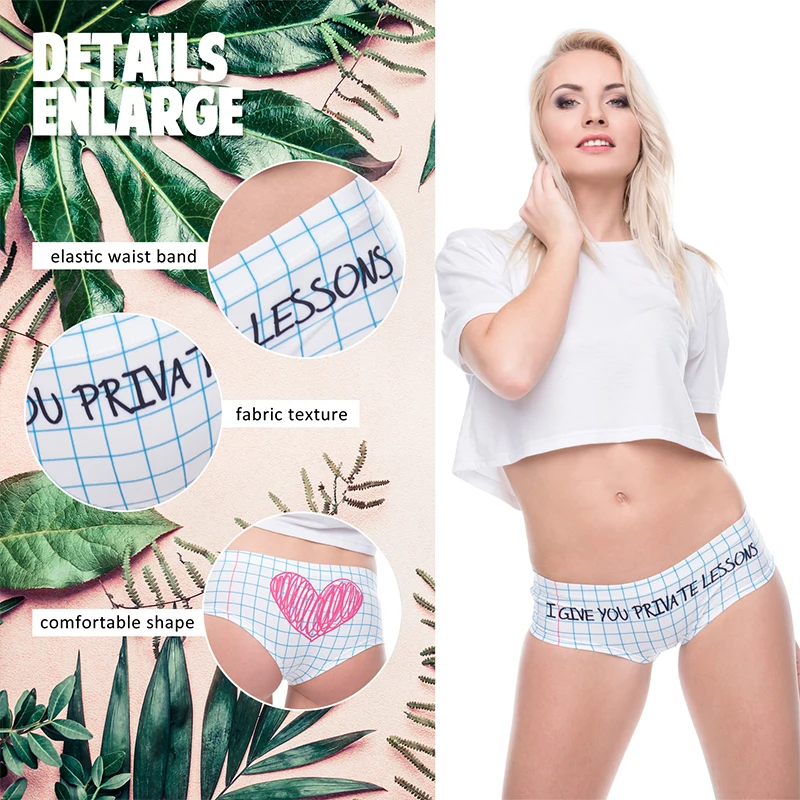 New Arrived Fashion 3D Private Lessons Pattern Print Cute Panties Briefs Lingerie Sexy Underwear