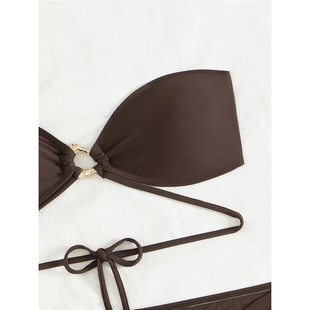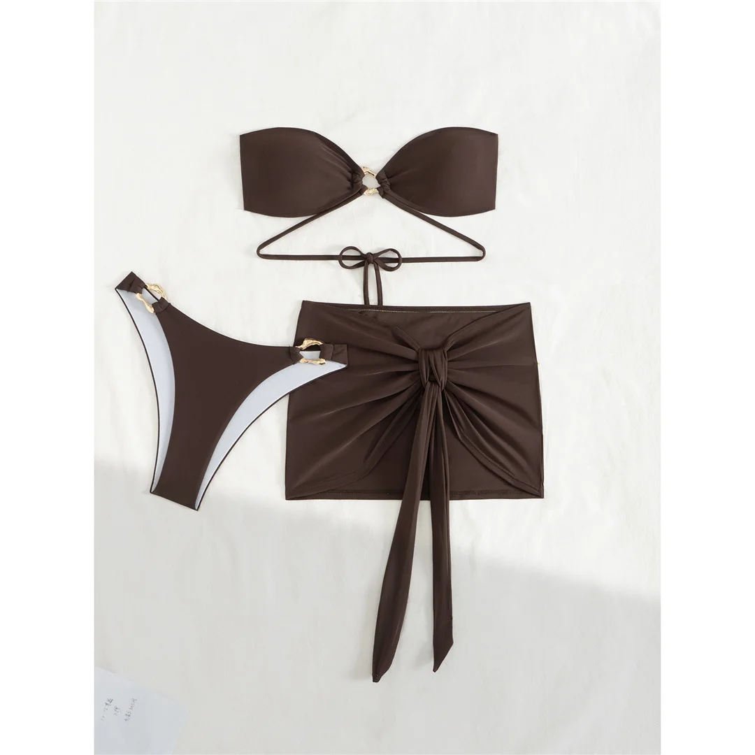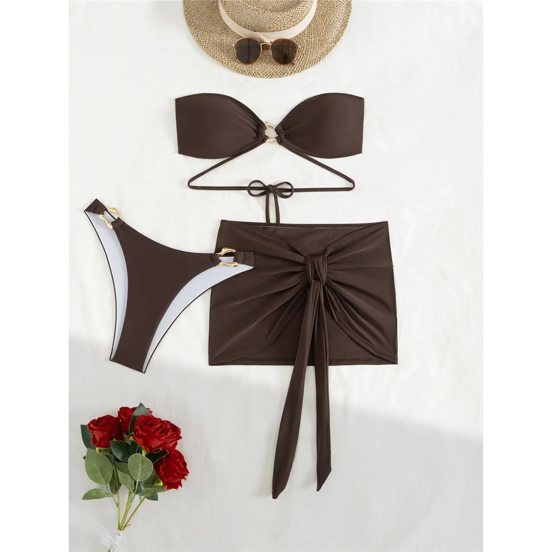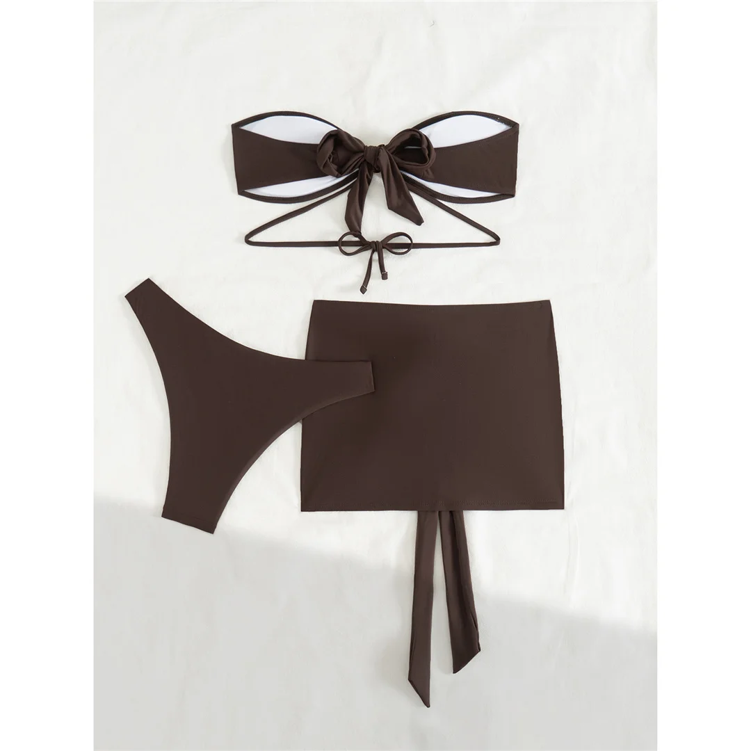 New Bandeau With Skirt Bikini Women Swimwear Female Swimsuit Three-pieces Bikini set High Leg Cut Bather Bathing Suit Swim V6264