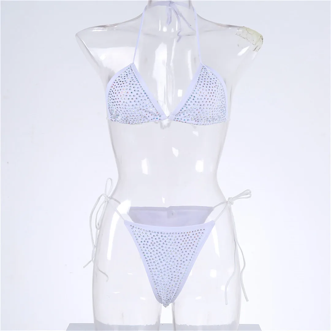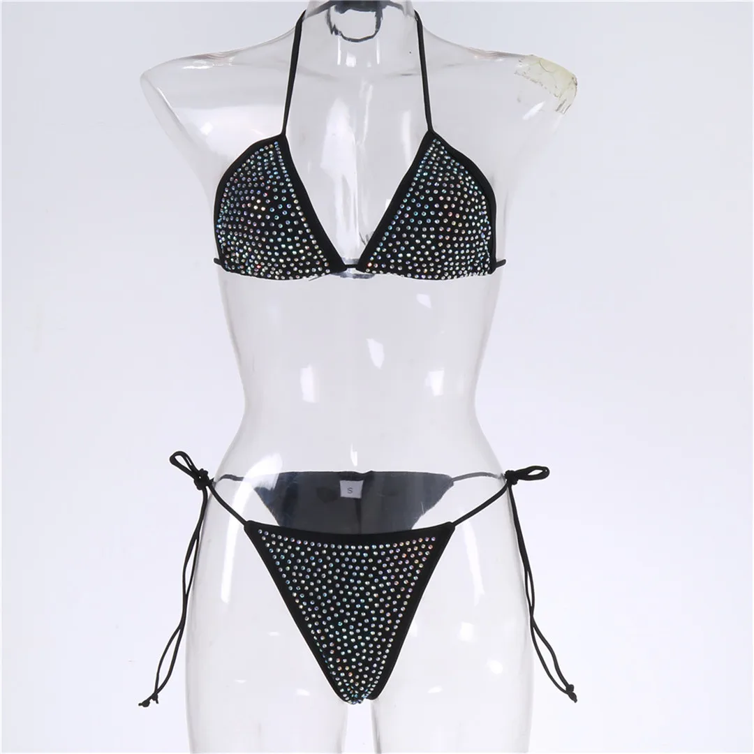 New Bling Rhinestone Bikini Female Swimsuit Women Swimwear Two-pieces Bikini set Halter Brazilian Bather Bathing Suit Swim V2495