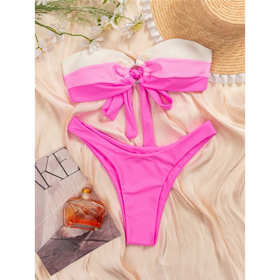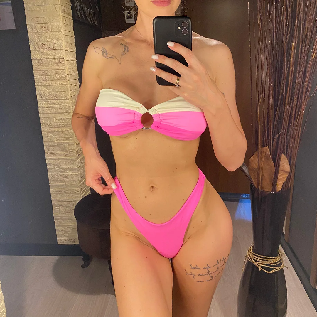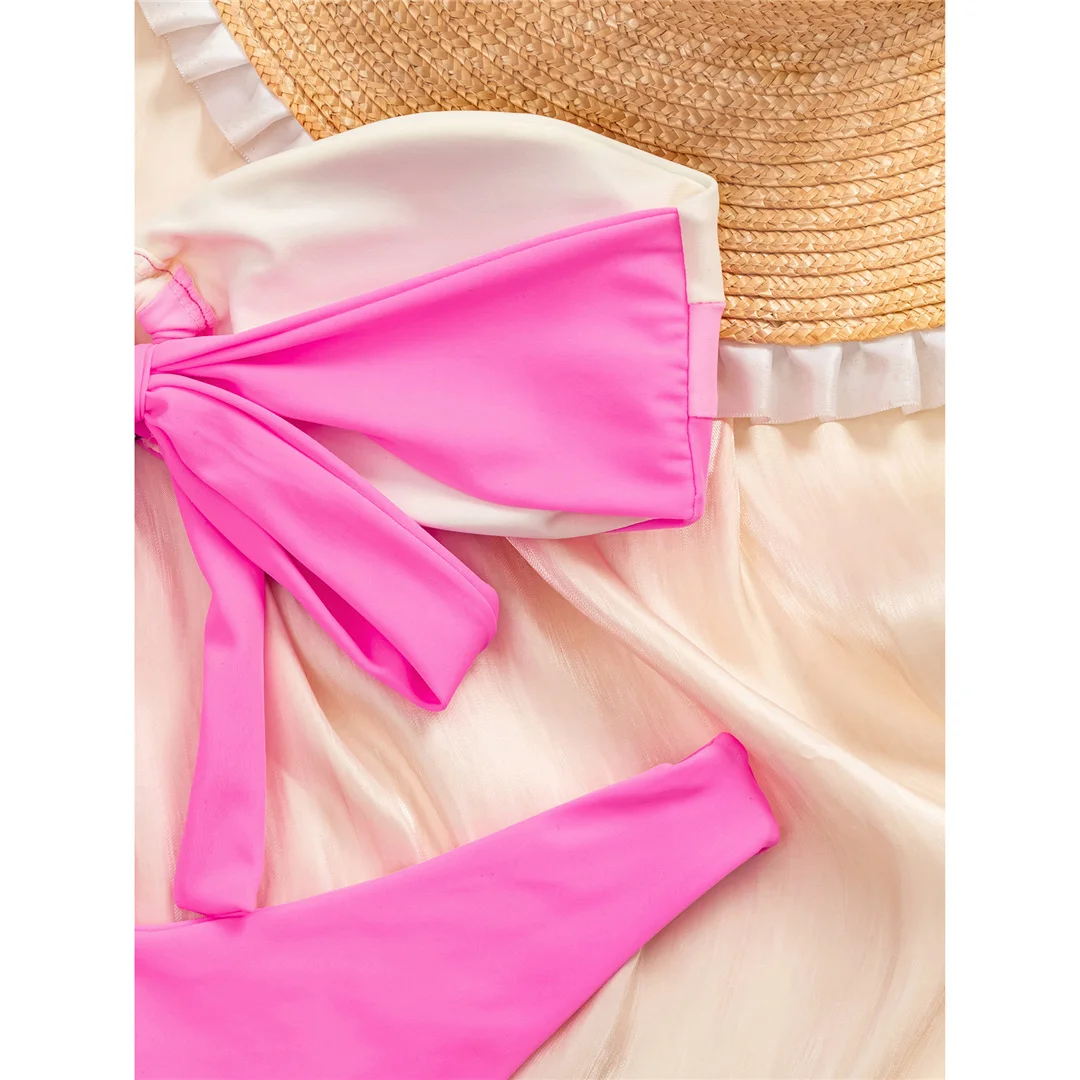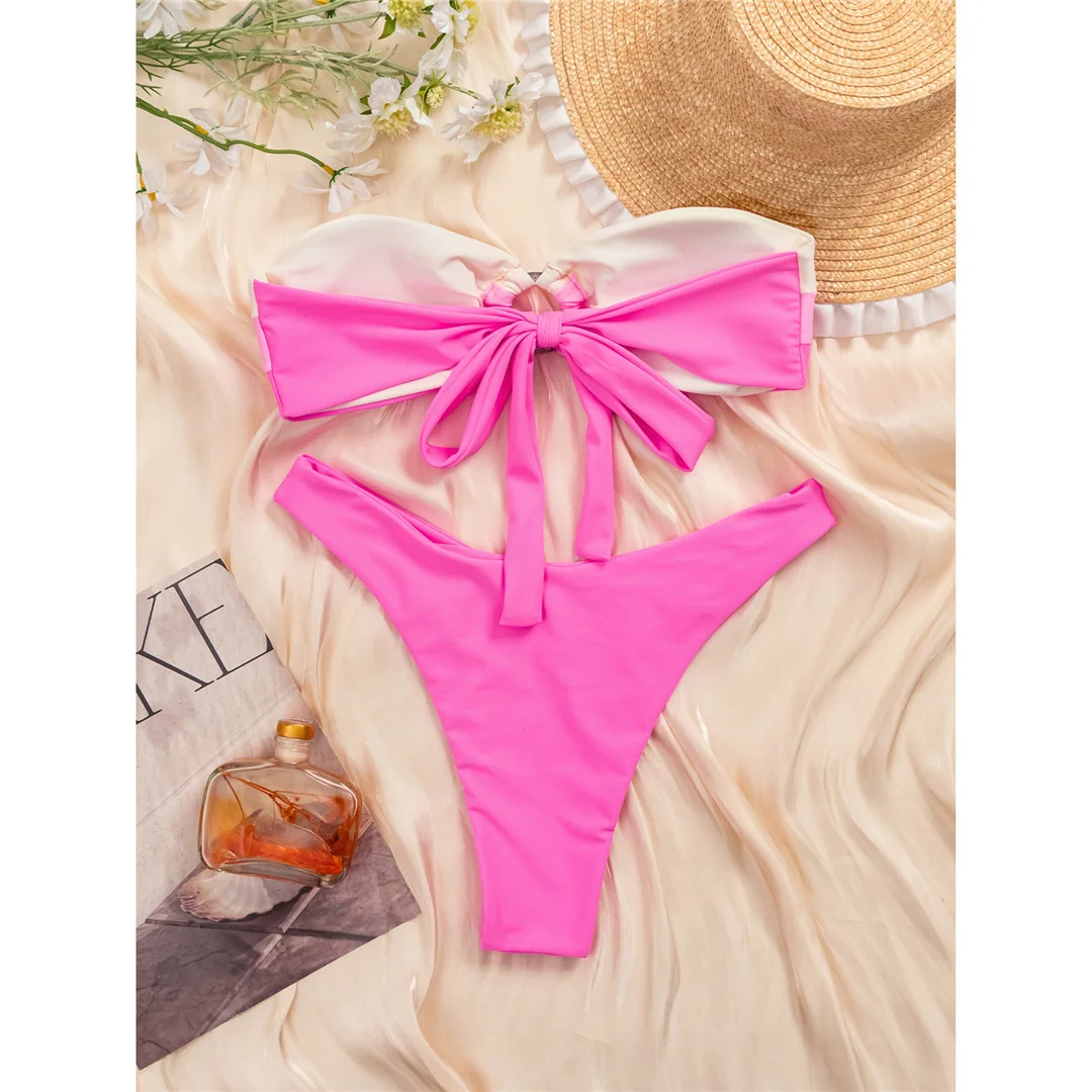 New Gradient Bandeau Bikini Female Swimsuit Women Swimwear Two-pieces Bikini set Brazilian Padded Bather Bathing Suit Swim V6729