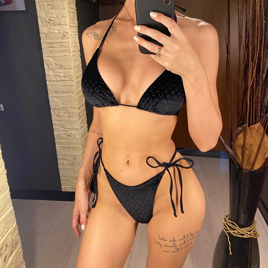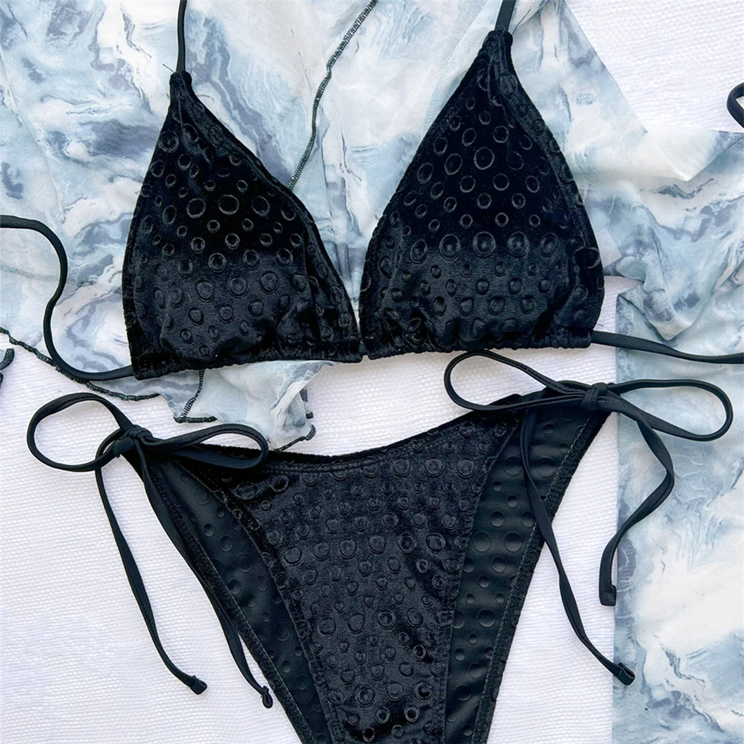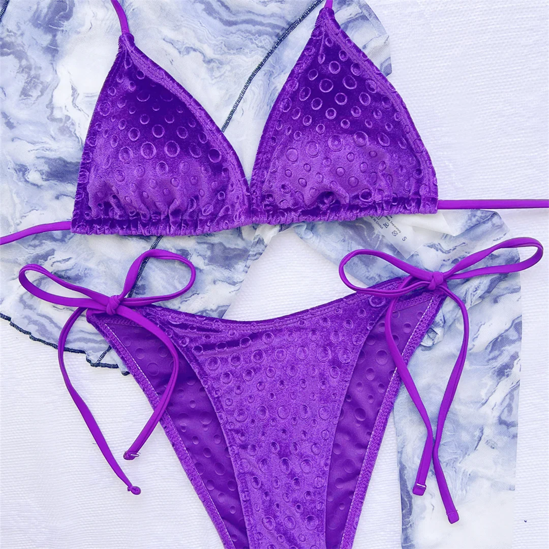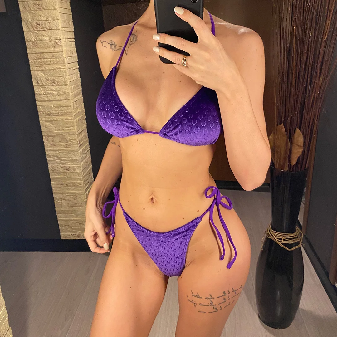 New Halter Velvet High Leg Cut Bikini Women Swimwear Female Swimsuit Two-pieces Bikini set Padded Bather Bathing Suit Swim V4502