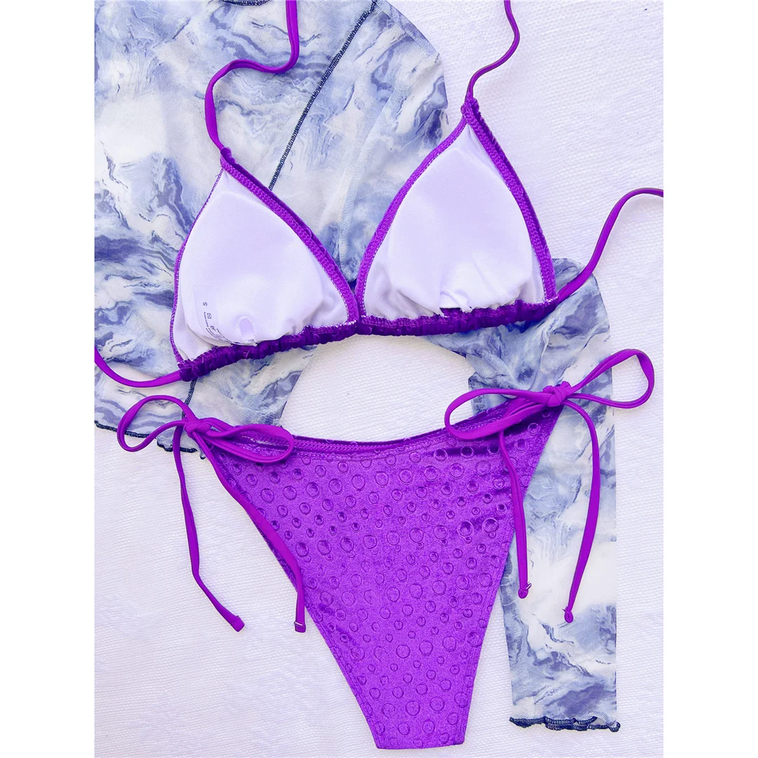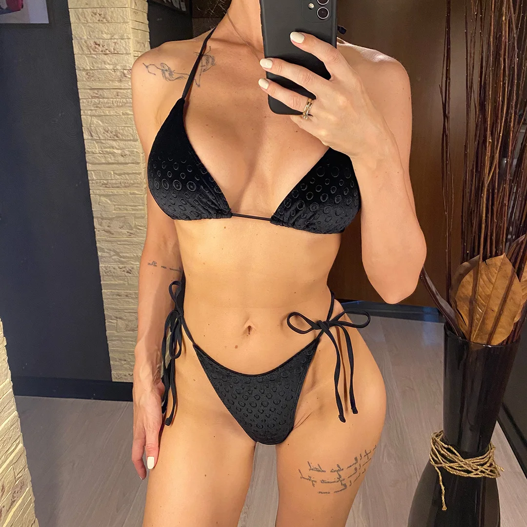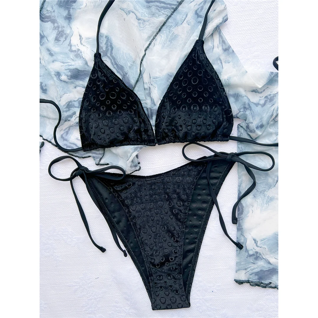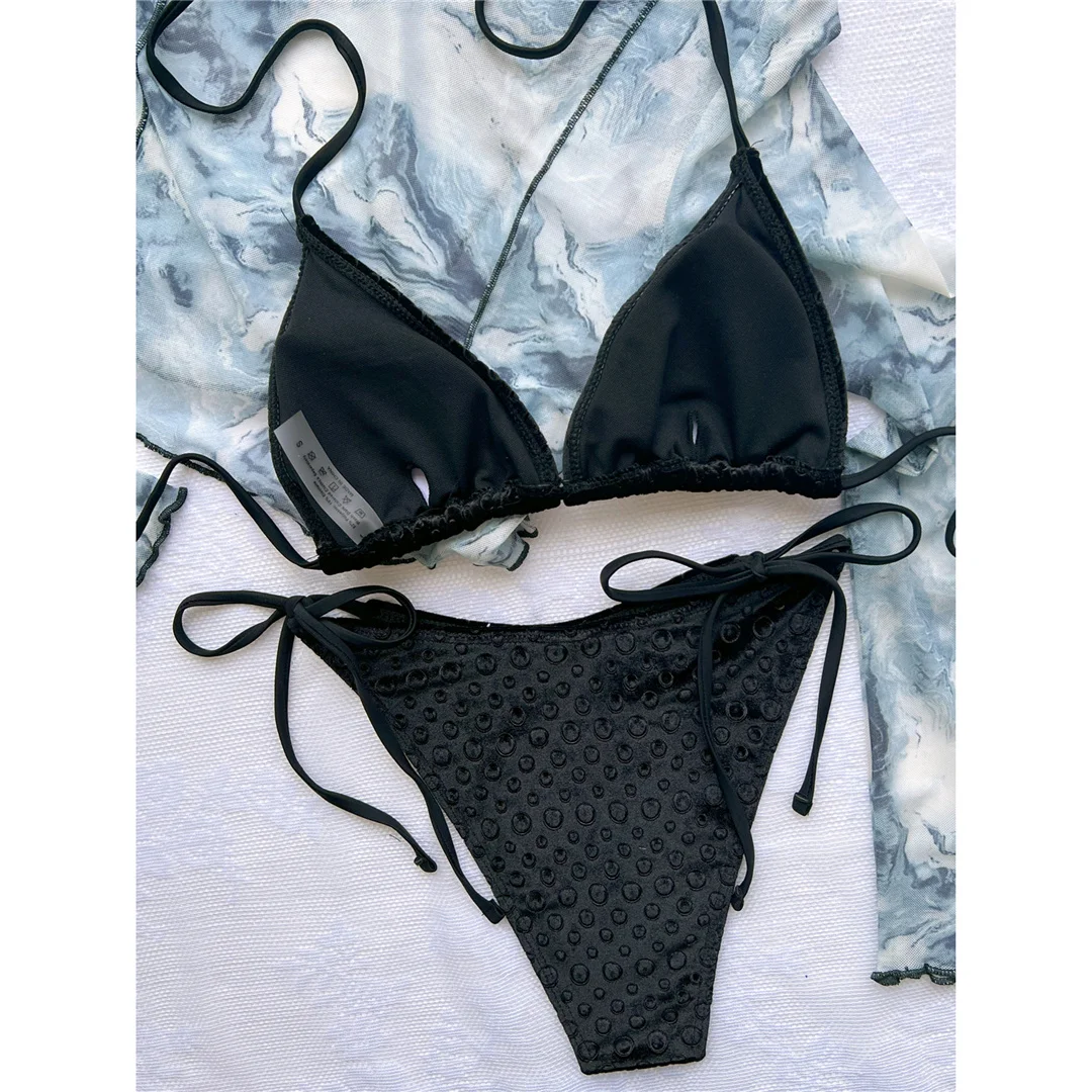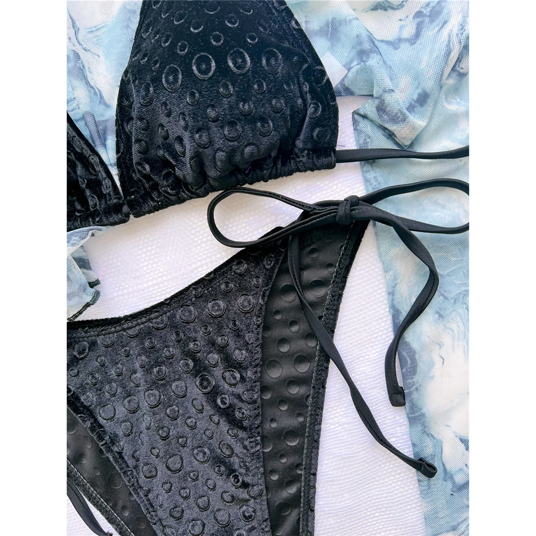 New Halter Velvet High Leg Cut Bikini Women Swimwear Female Swimsuit Two-pieces Bikini set Padded Bather Bathing Suit Swim V4502