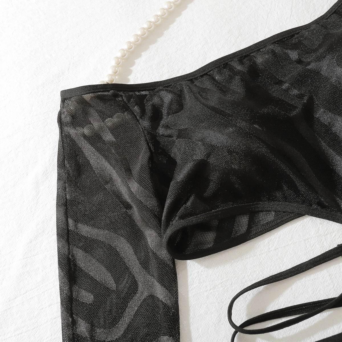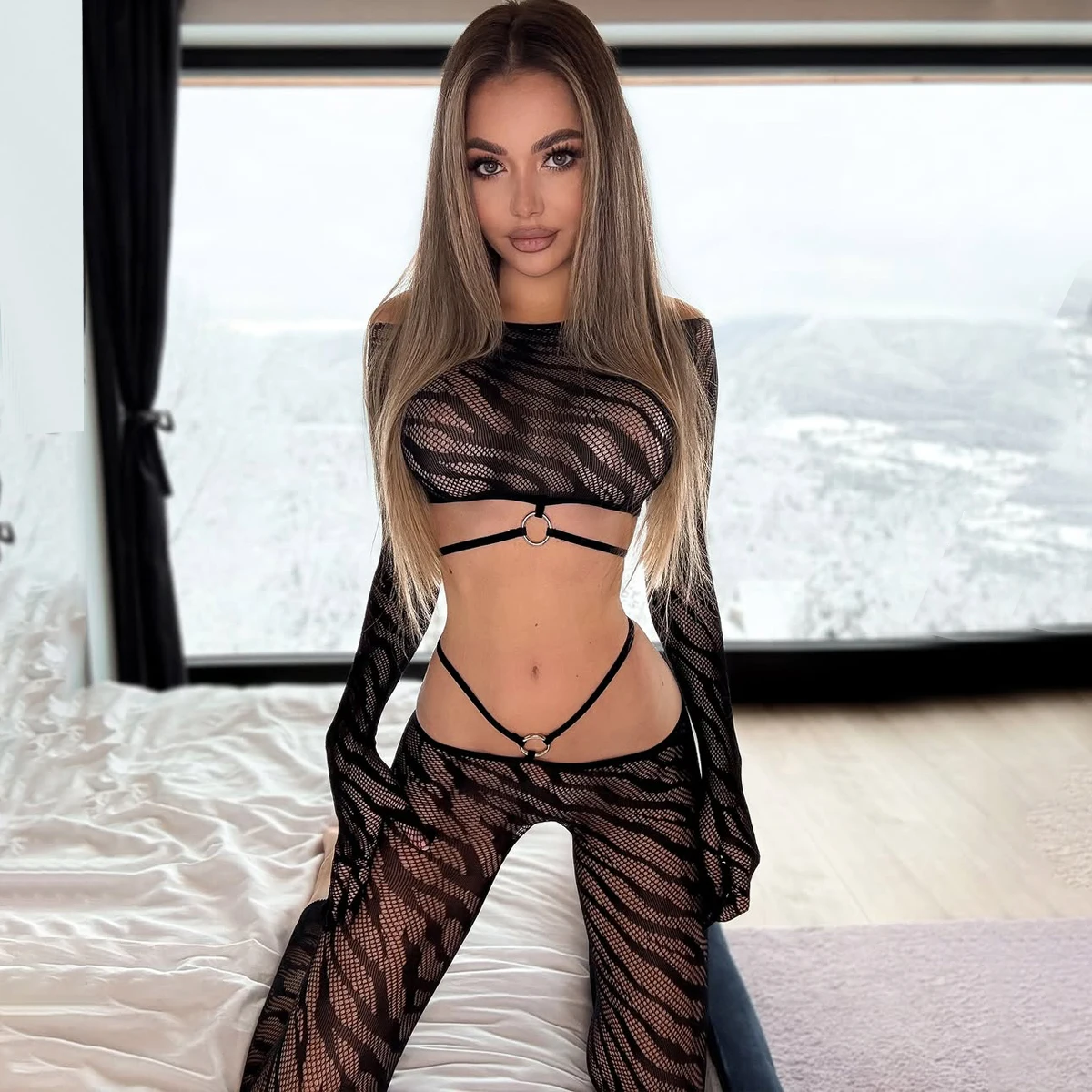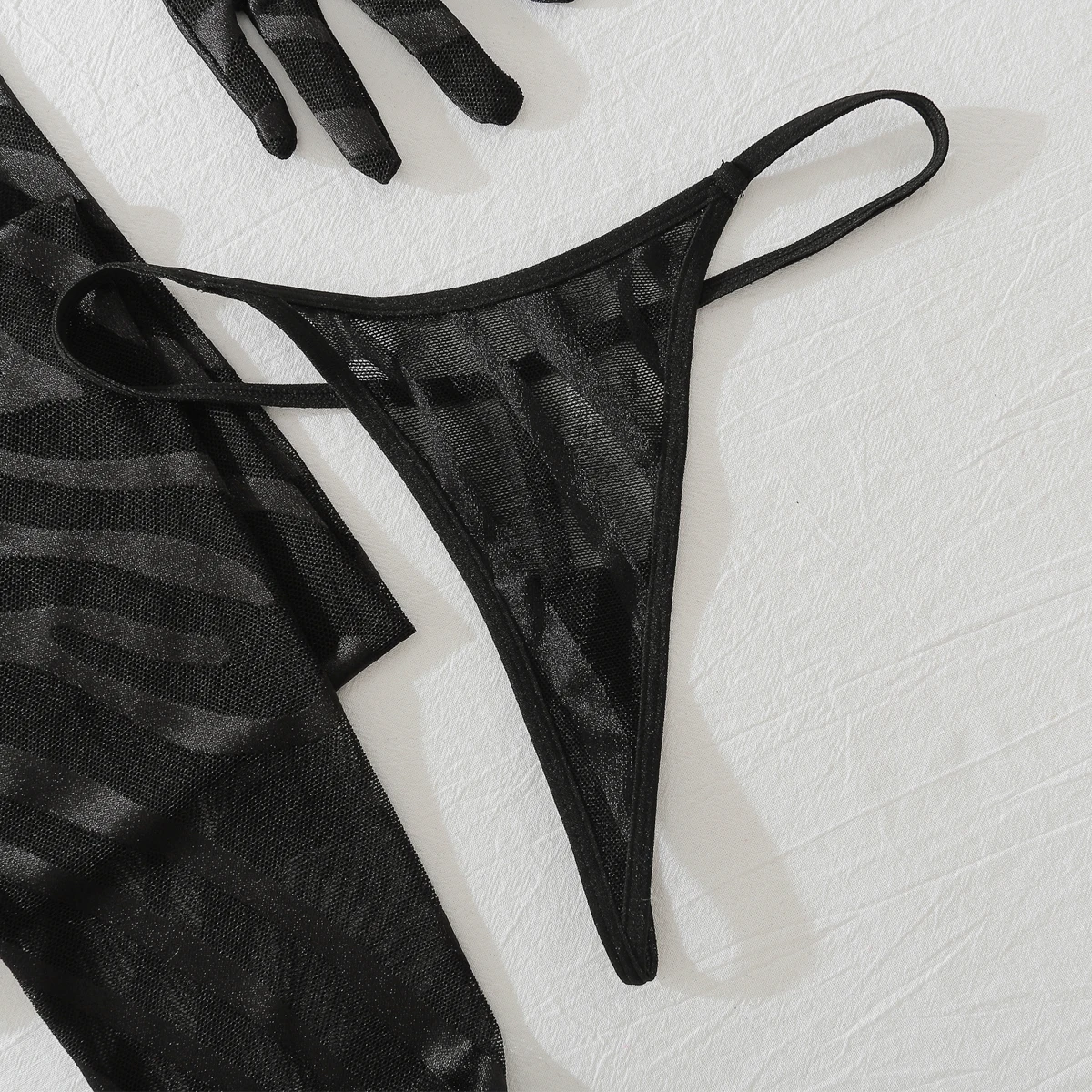 New Ladies Hollow Lace Hot Girl Suit Sexy Fishing Net Tights Nightclub Temptation Erotic Lingerie three-piece Suit
