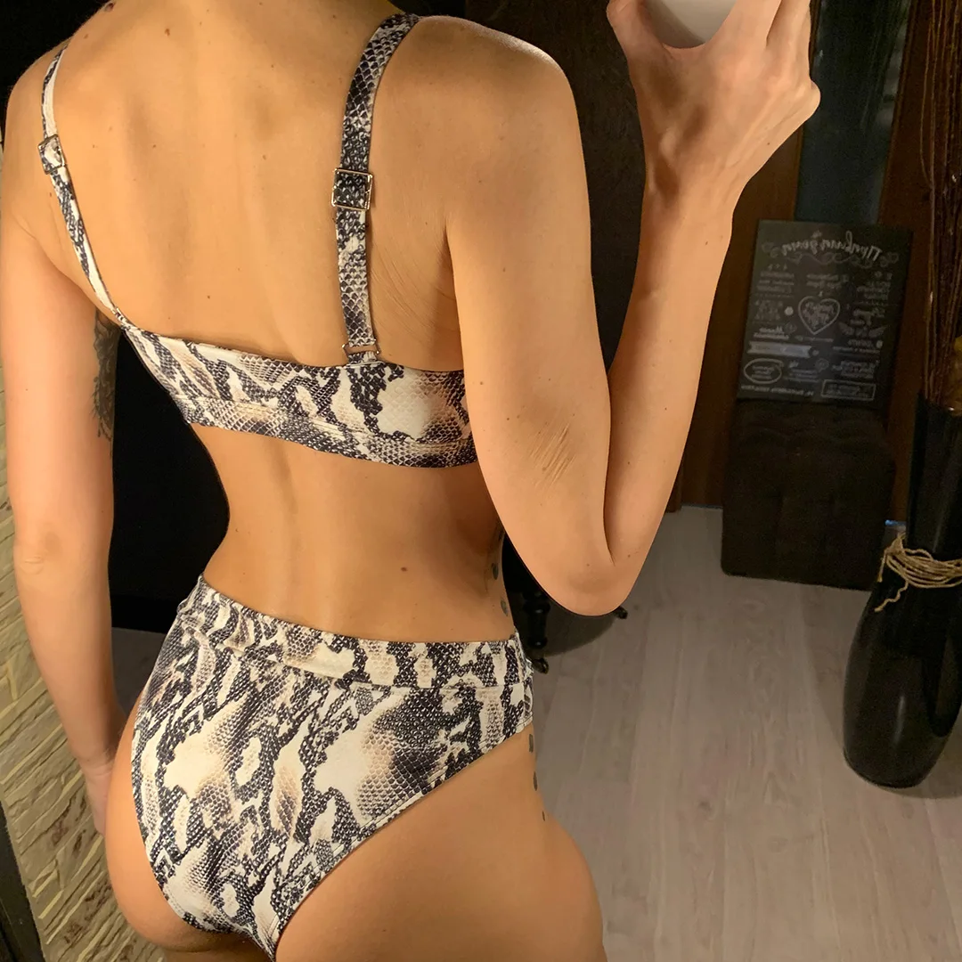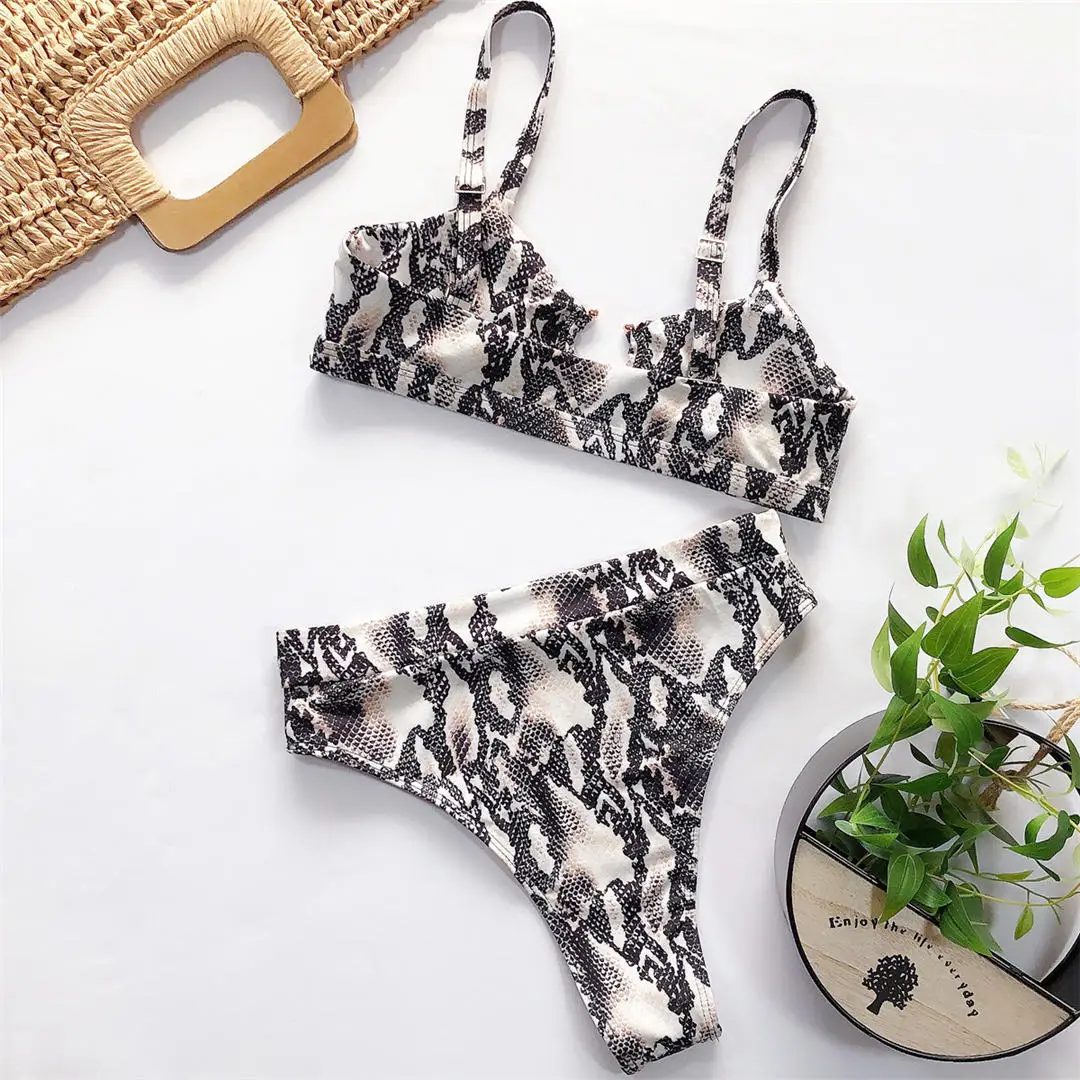 NEW Leopard Swimsuit High Waist Bikini Women Swimwear Two-pieces Bikini set Bather Snake Printed Bathing Suit Swim Wear V1712