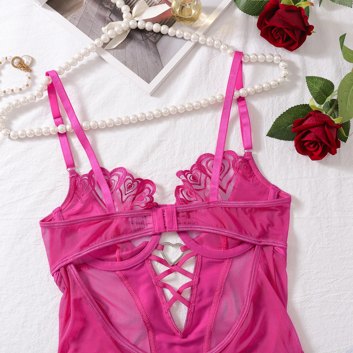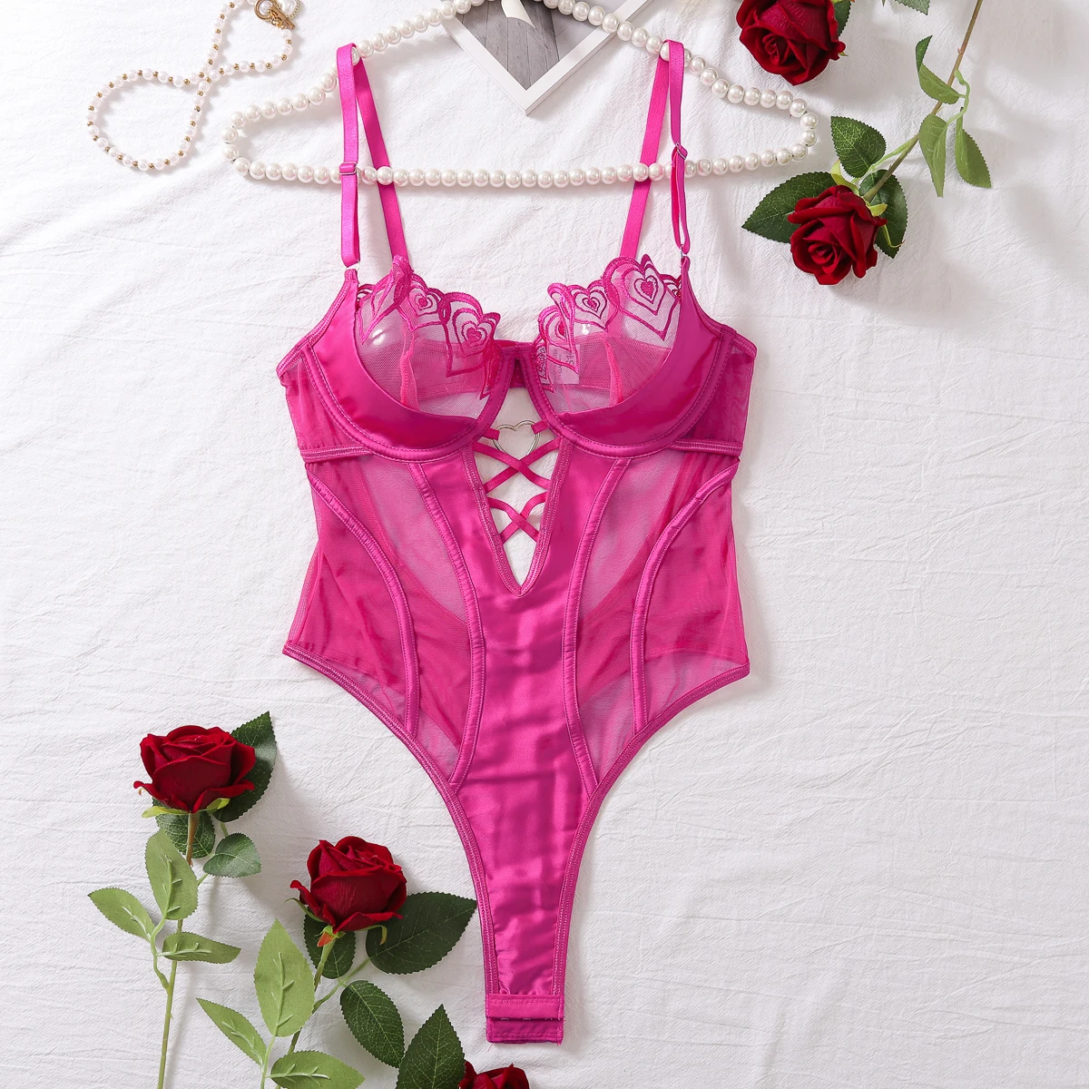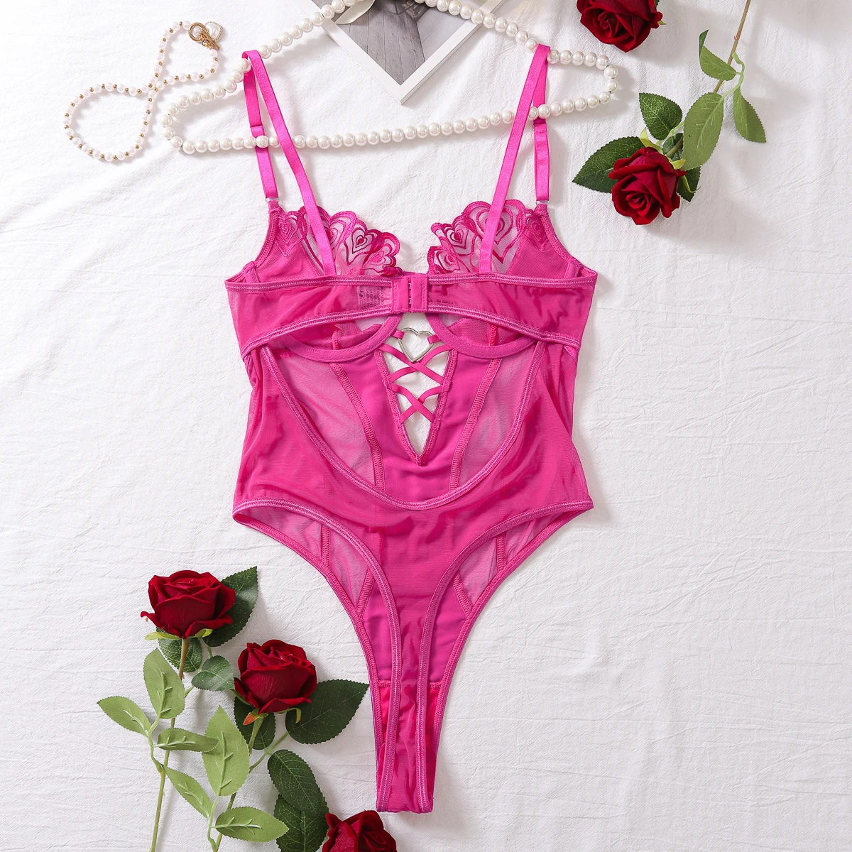 New Luxury Embroidery Erotic Lingerie See-through Ultra-thin Sexy Mesh Slim Jumpsuit Temptation Ladies Hollow Bra