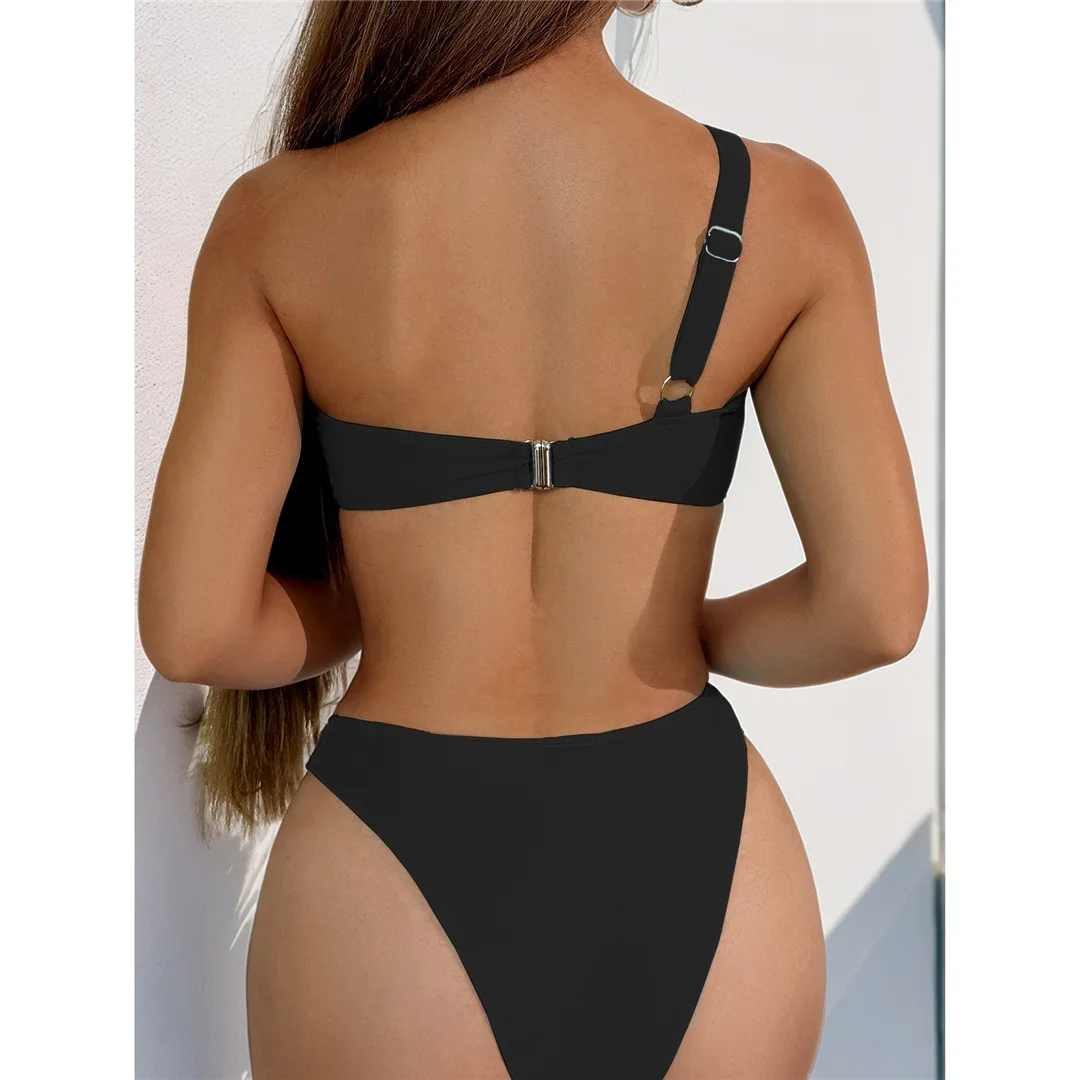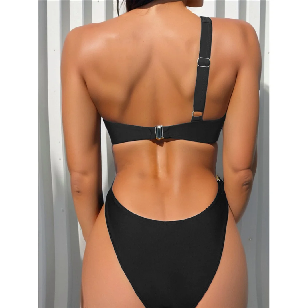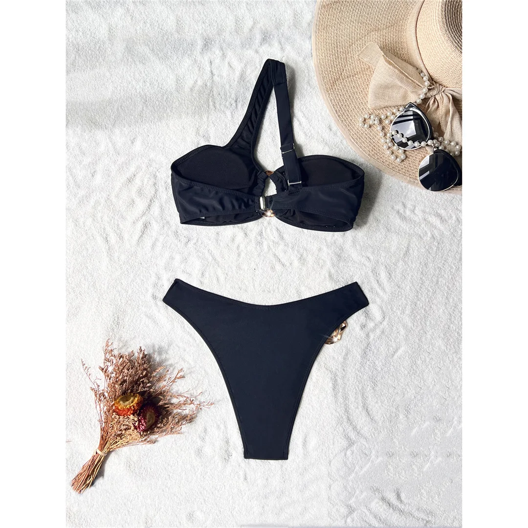 New Metal Ring One Shoulder Brazilian Bikini Women Swimwear Female Swimsuit Two-pieces Bikini set Bather Bathing Suit Swim V6773