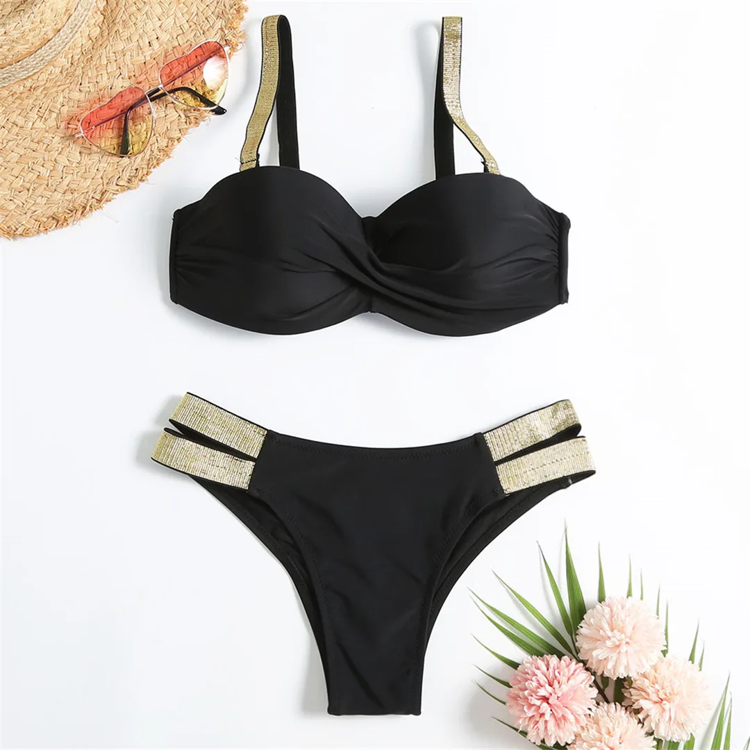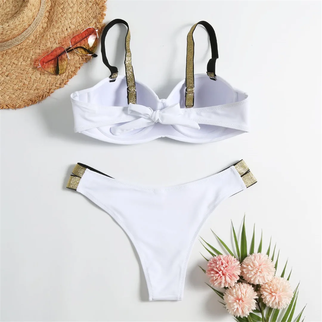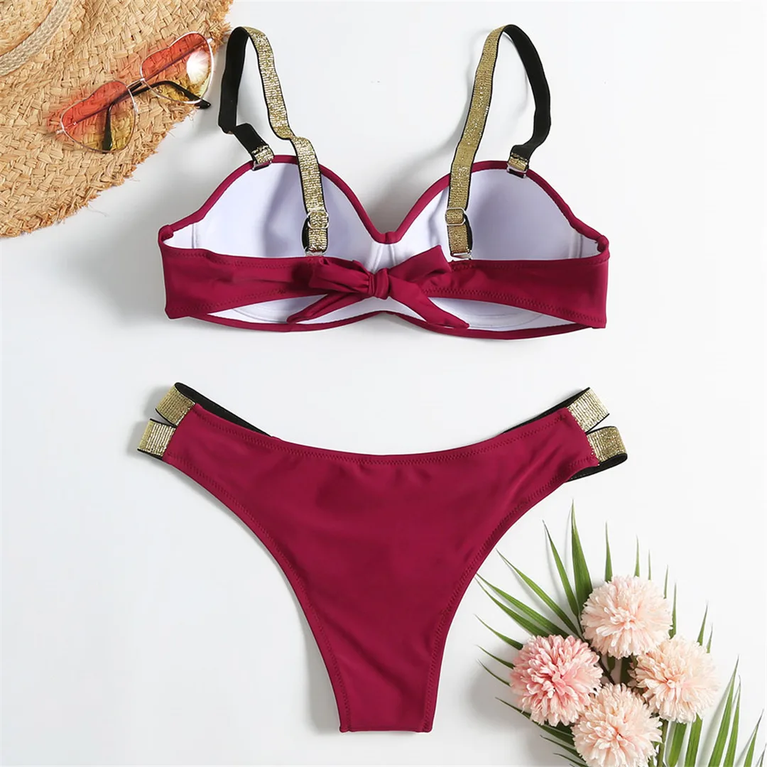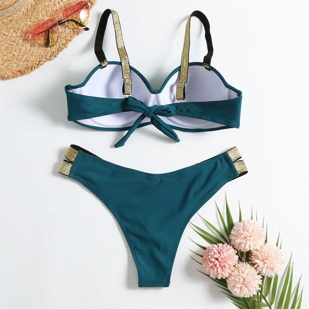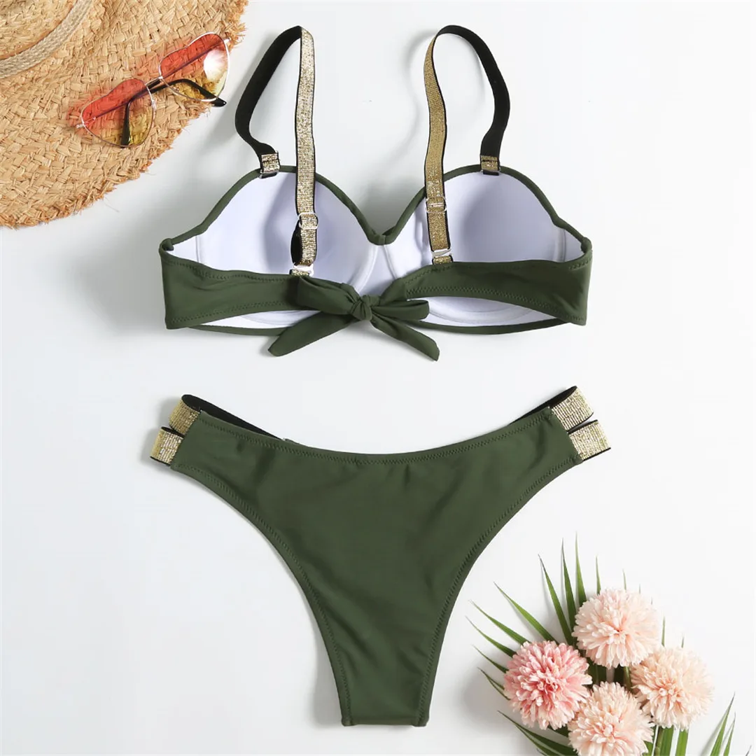 New S – XL Bra Bikini Push Up Swimsuit Female Swimwear Women Two-pieces Bikini set With Cup Bather Bathing Suit Swim Lady V2310