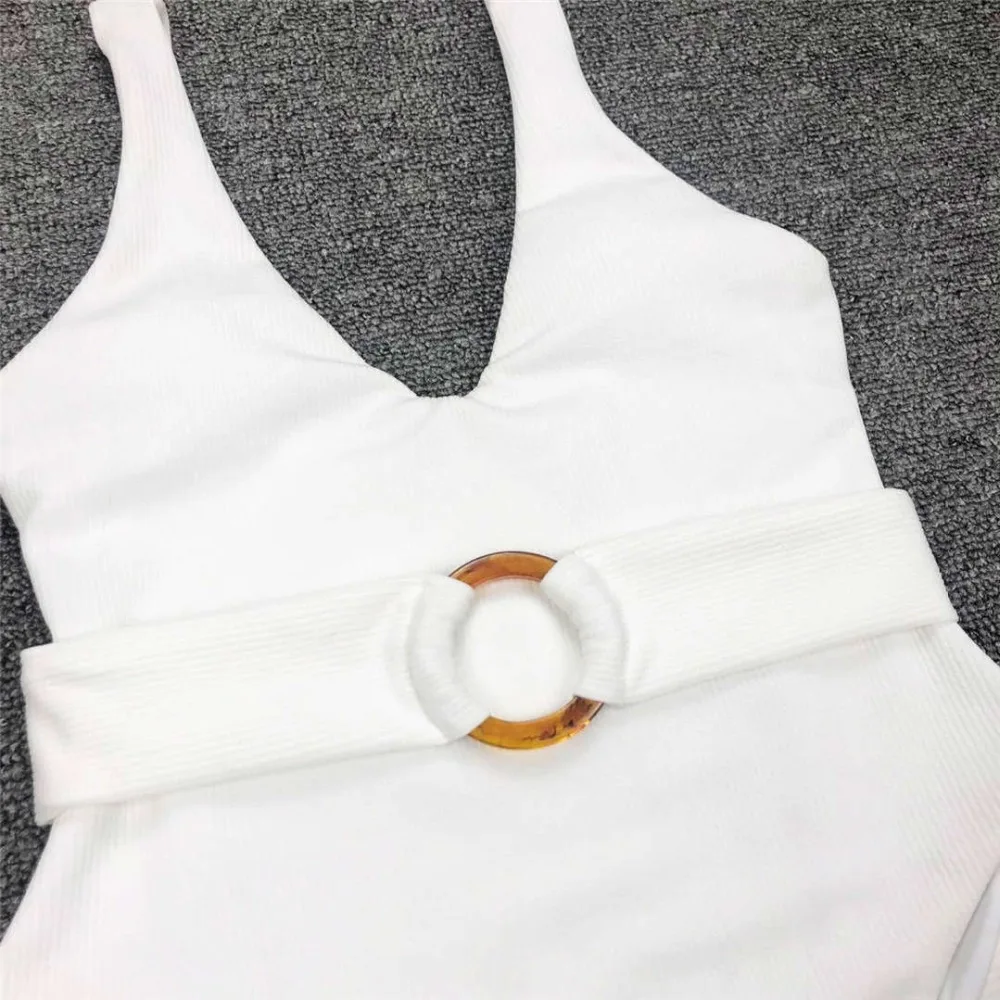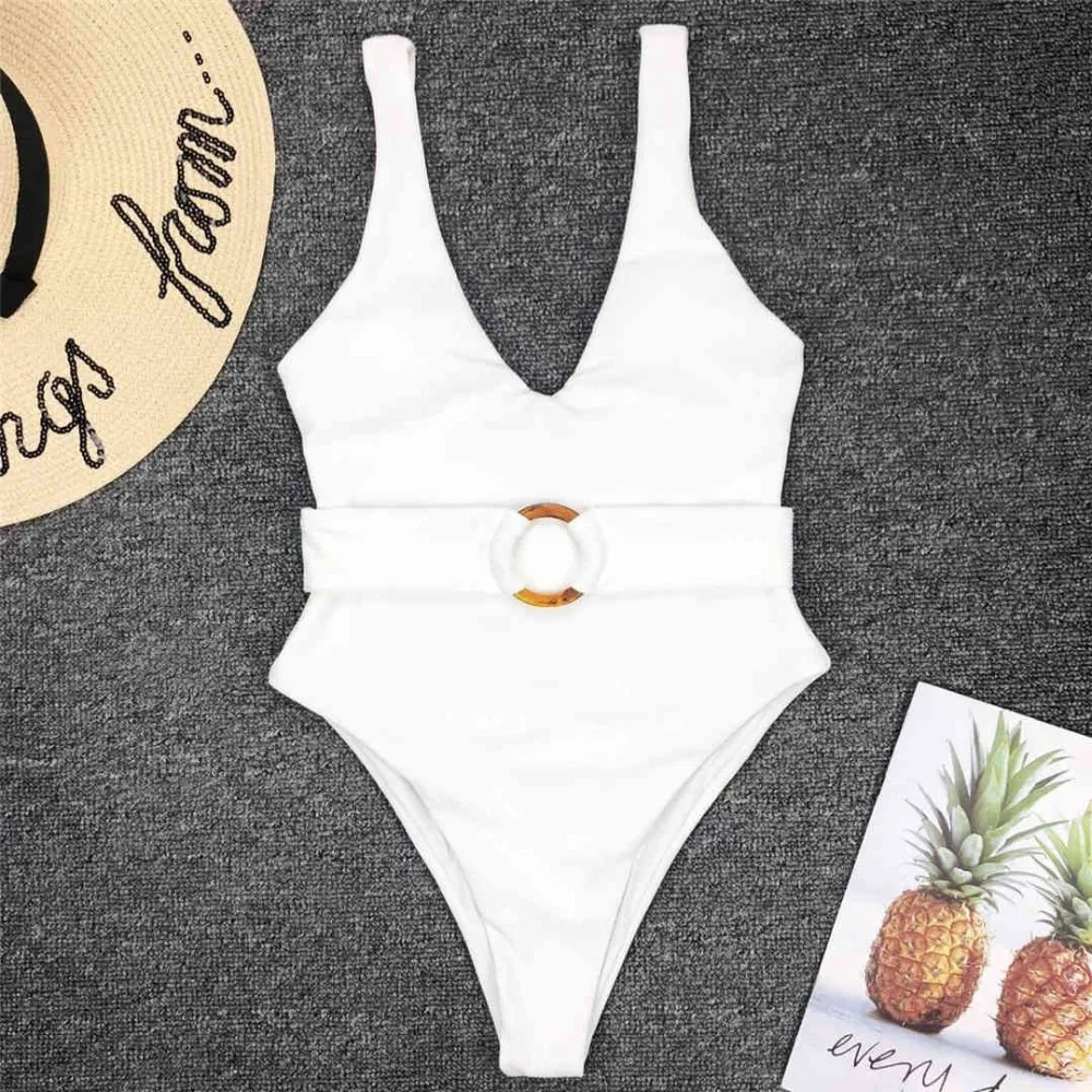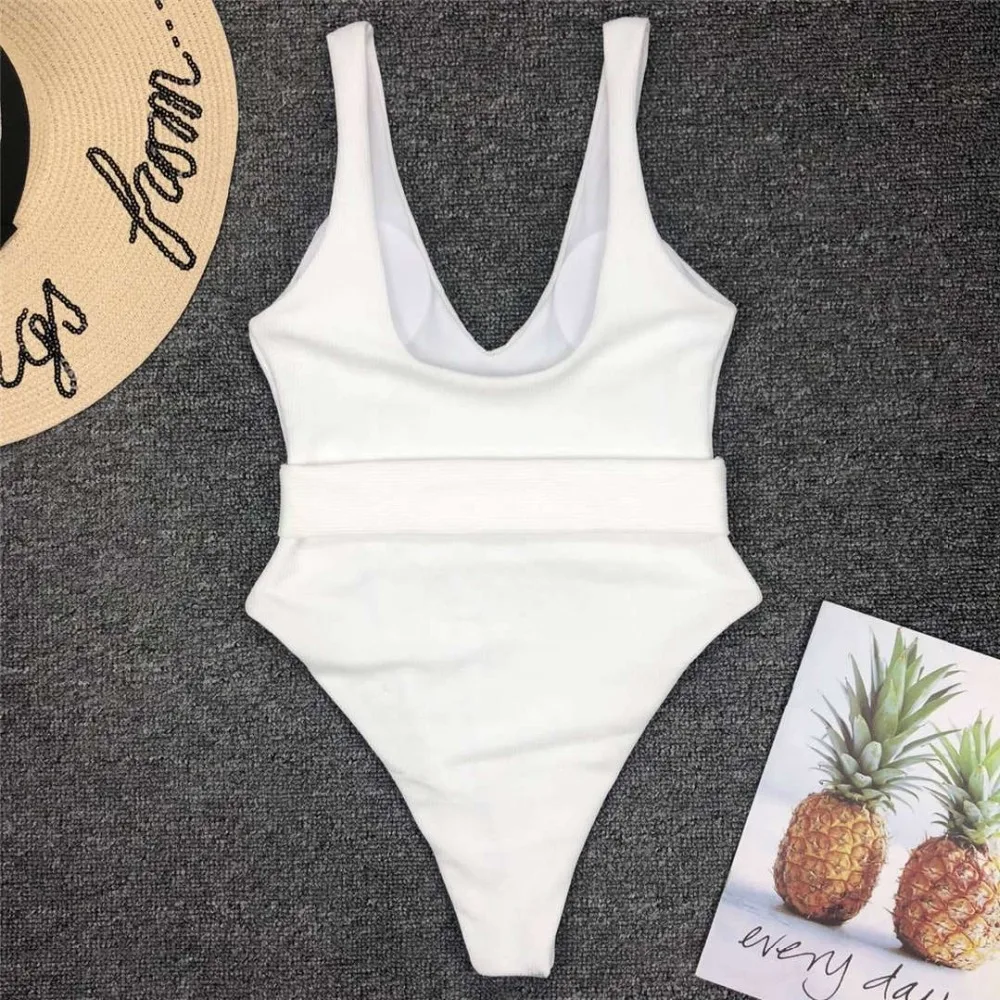 New Sexy Deep V Neck Monokini High Cut Women Swimwear One Piece Swimsuit Female Bather With Waist Band Bathing Suit Swim V1383