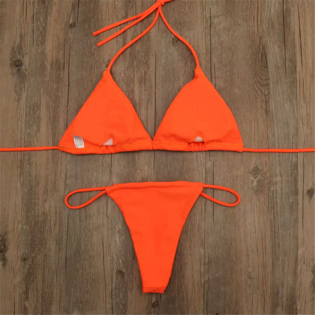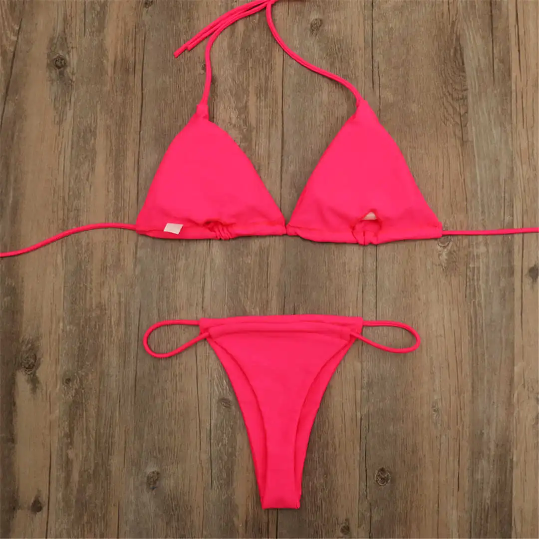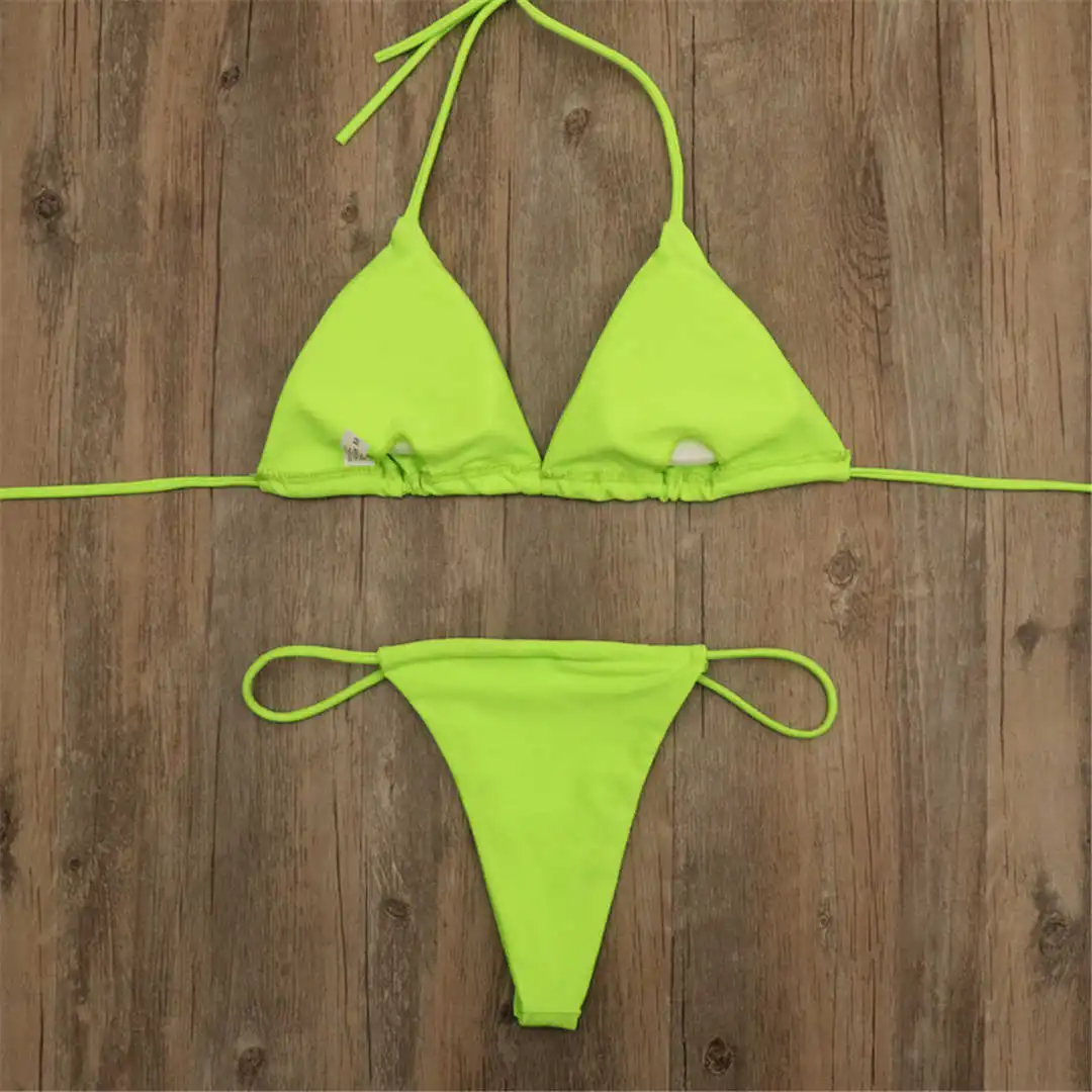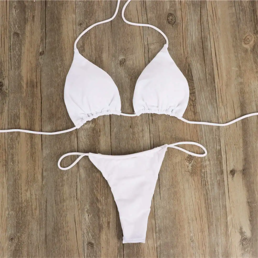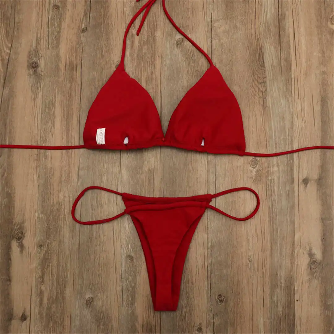 New Sexy Halter Tiny Thong Bikini Women Swimwear Female Swimsuit Two-pieces Bikini set Padded Mini Bather Bathing Suit V2477R