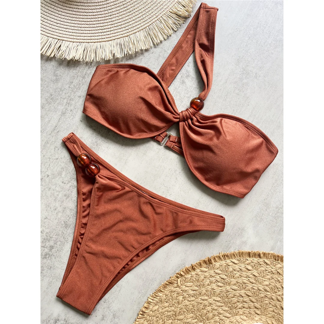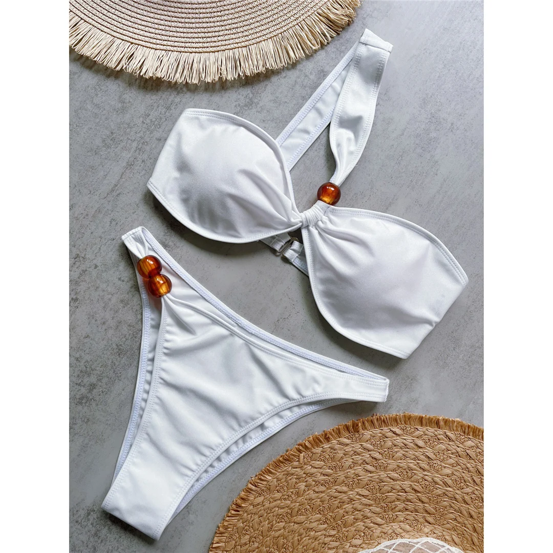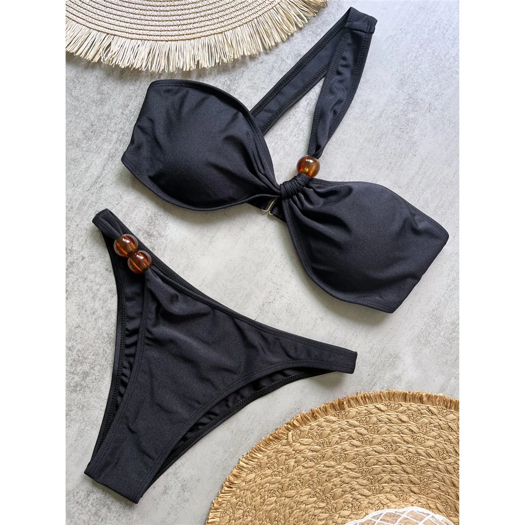 New Sexy One Shoulder High Cut Bikini Female Swimsuit Women Swimwear Two-pieces Bikini set Padded Bather Bathing Suit Swim V6380