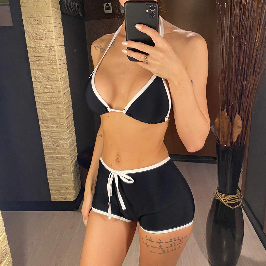 New Sexy Splicing Halter Bikini Female Swimsuit Women Swimwear Two-pieces Bikini set Beach Shorts Bather Bathing Suit Swim V5226