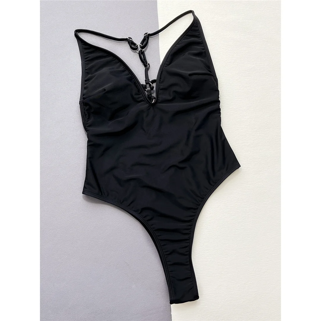 New Sexy Strappy V Neck High Cut Women Swimwear One Piece Swimsuit Female Backless Monokini Bather Bathing Suit Swim Lady V5227