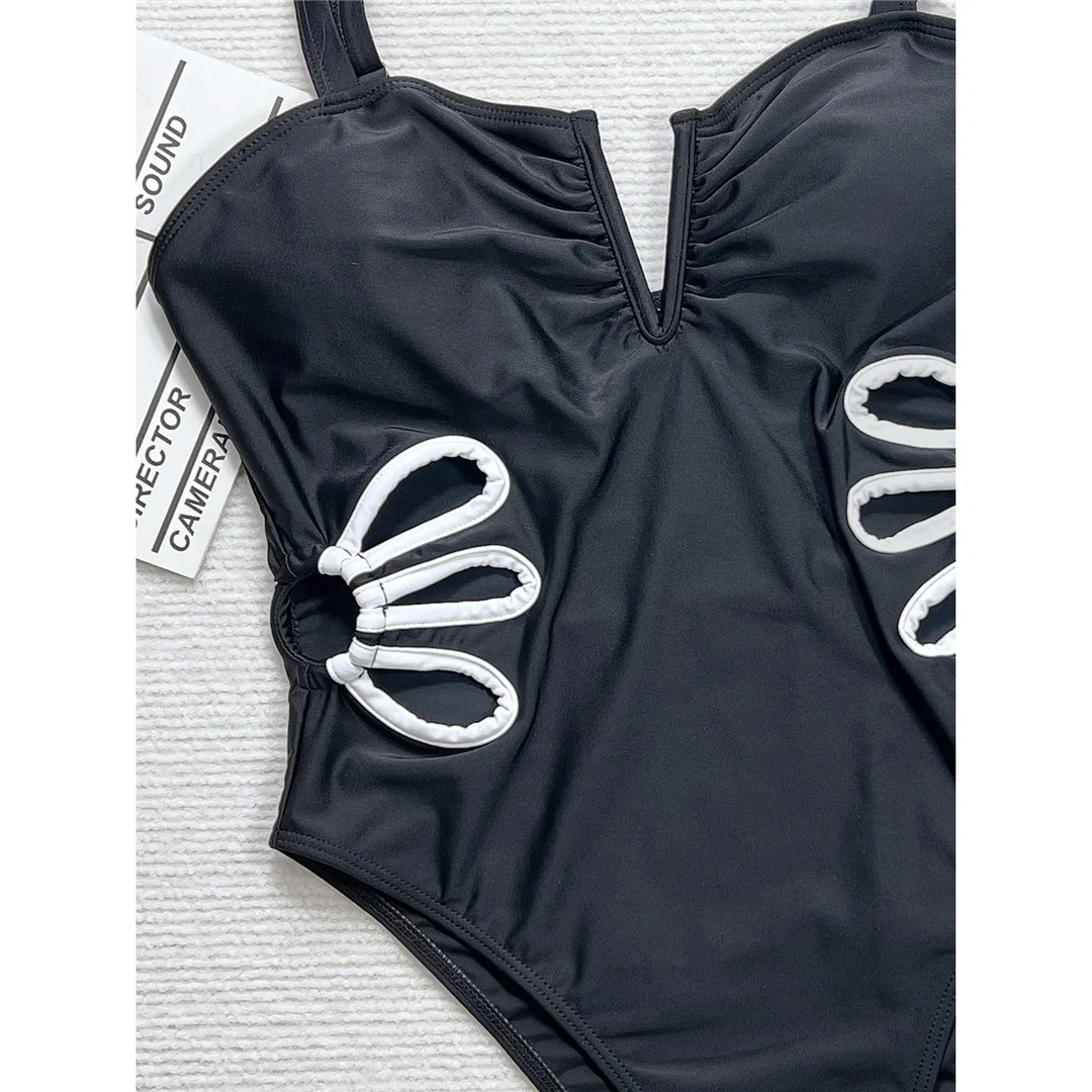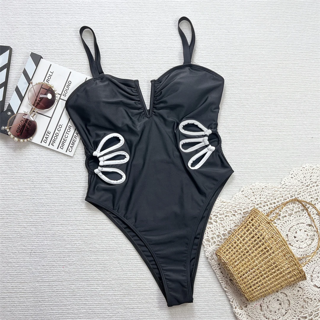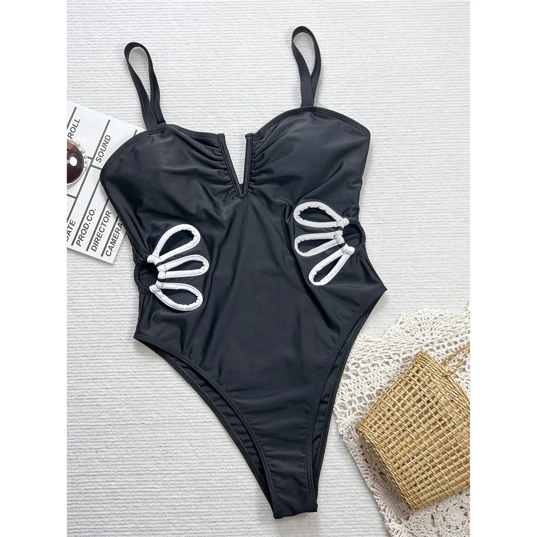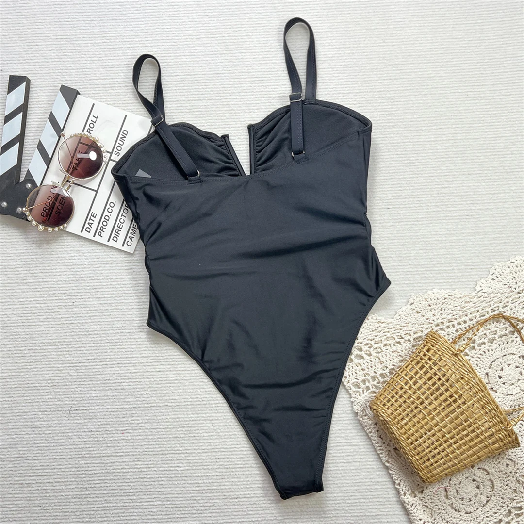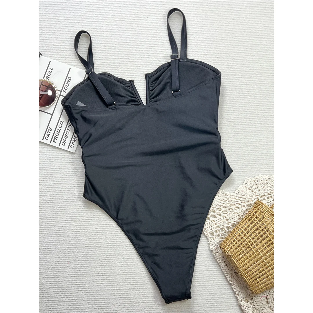 New Sexy V Shaped Cut Out Women Swimwear One Piece Swimsuit Female High Leg Cut Monokini Padded Bather Bathing Suit Swim V6054