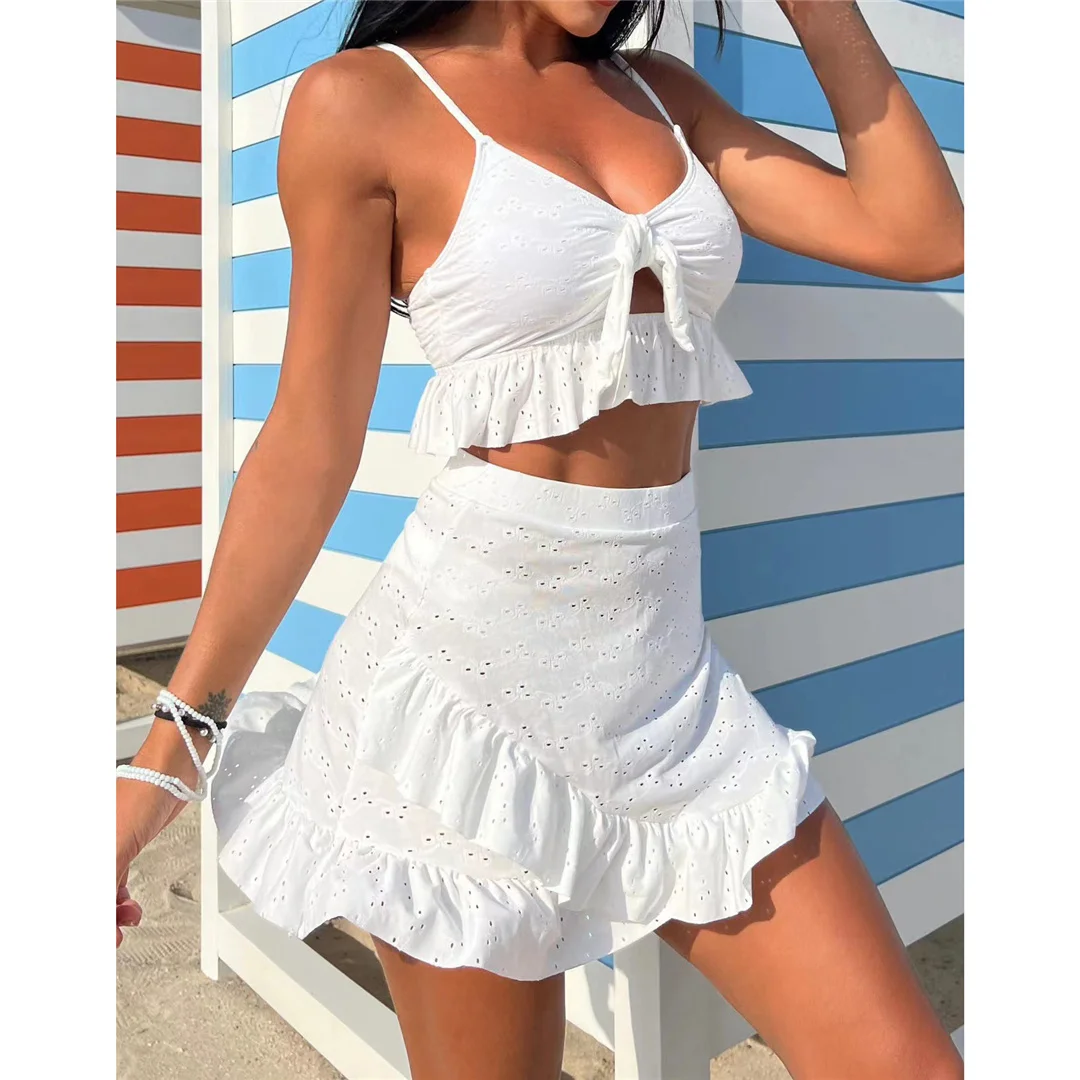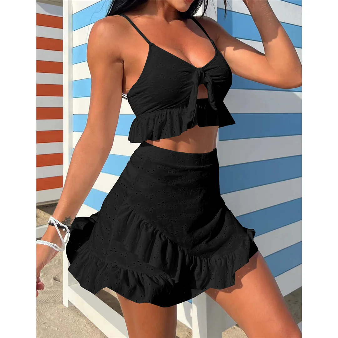 New Sexy With Skirt Ruffled Frilled Bikini Women Swimwear Female Swimsuit Three-pieces Bikini set Bather Bathing Suit Swim V4625