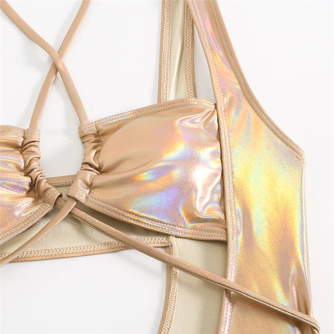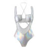New Shiny PU Faux Leather Tummy Cut Out Women Swimwear One Piece Swimsuit Female Halter Monokini Bather Bathing Suit Swim V5715