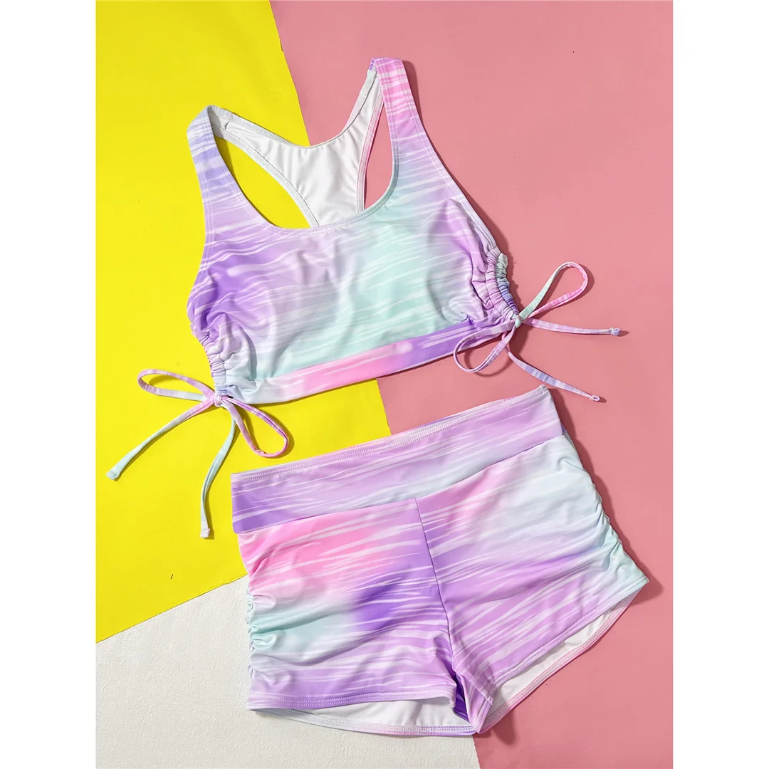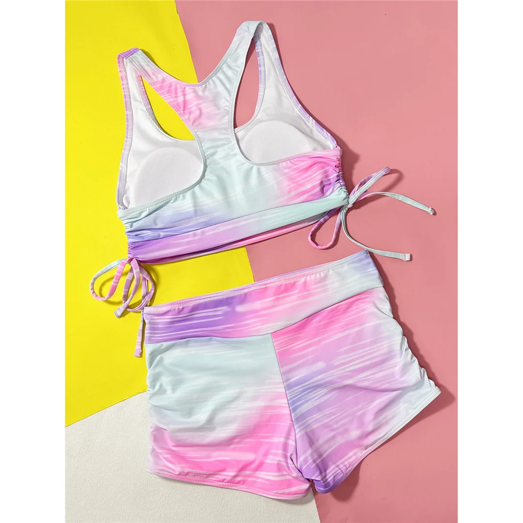 New Tie Dye Lace Up Shorts Female Swimsuit High Waist Bikini Women Swimwear Two-pieces Bikini set Bather Bathing Suit Swim V4969