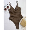 New V Neck Knotted Wrinkled High Cut Leg One Piece Swimsuit Women Swimwear Female Padded Monokini Bather Bathing Suit Swim V6485