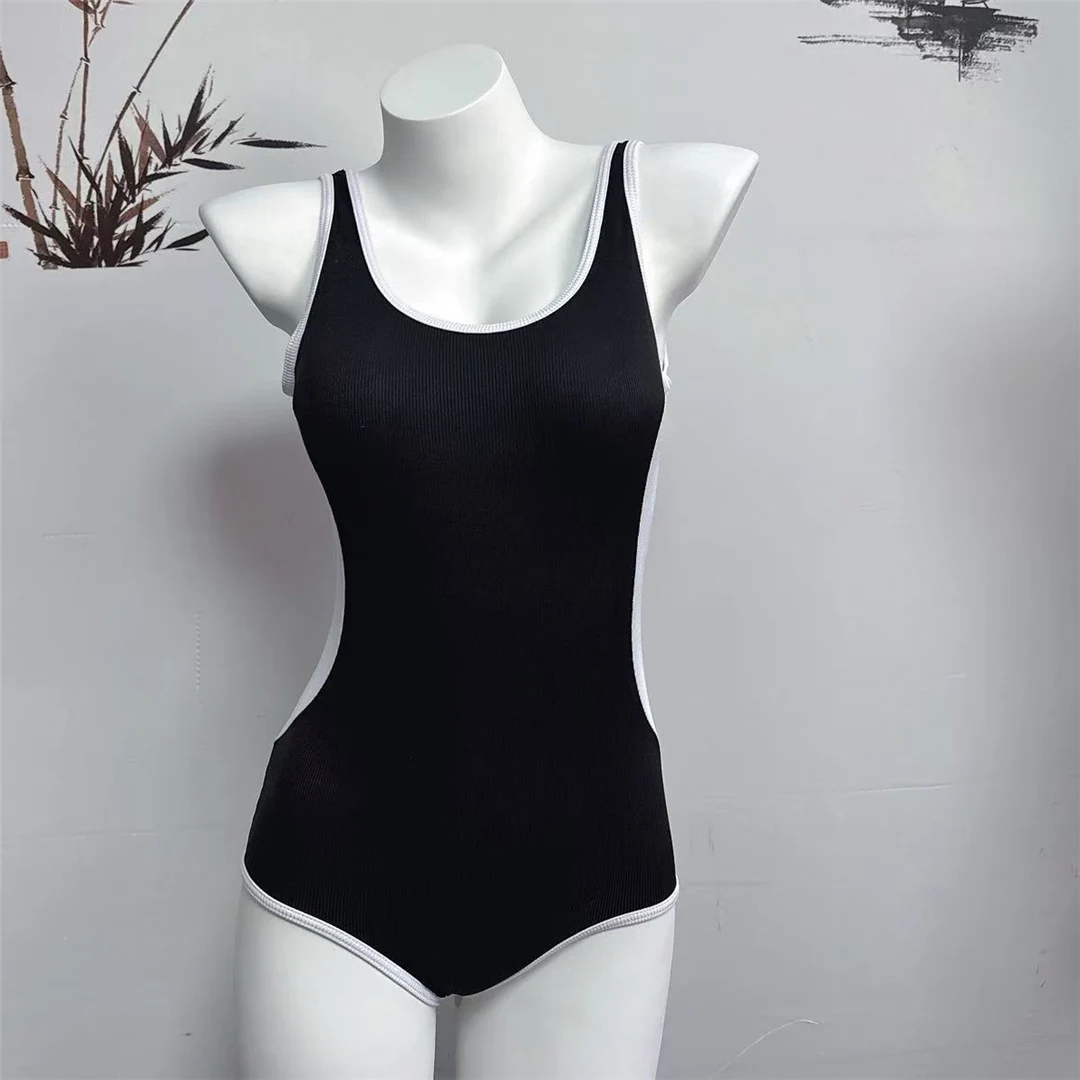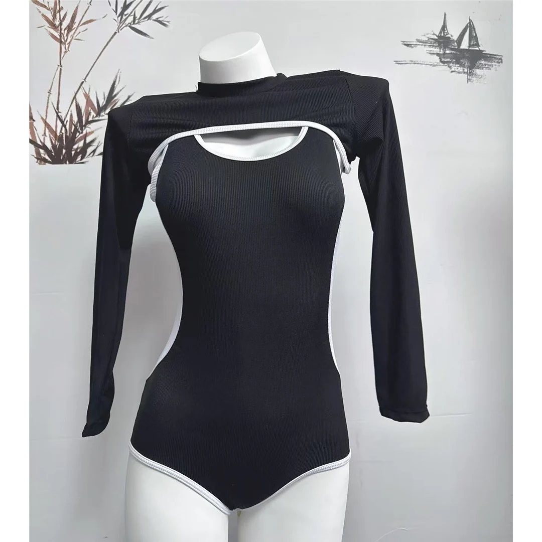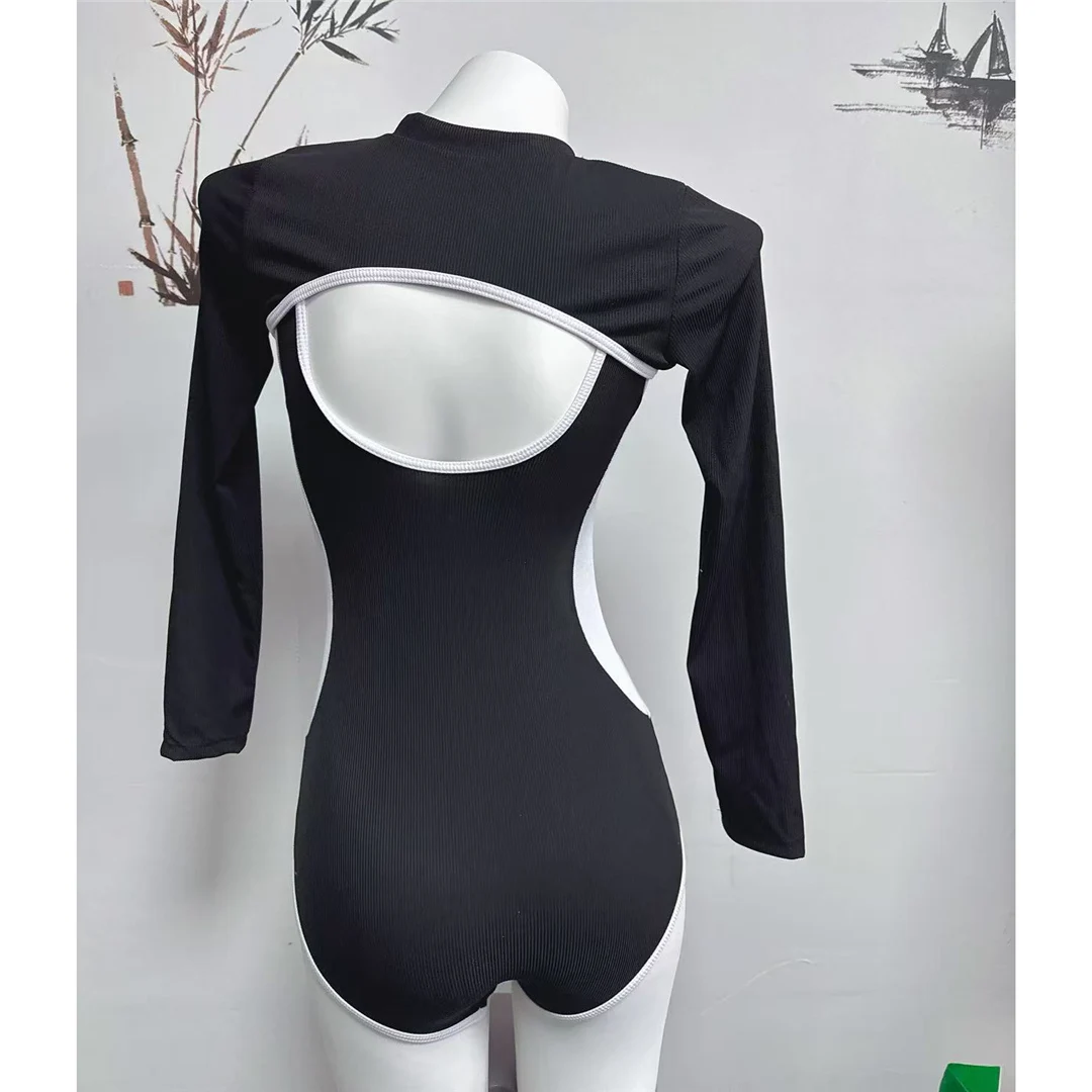 New With Long Sleeve Cover Up Splicing One Piece Swimsuit Women Swimwear Female Ribbed Backless Bather Bathing Suit Swim V6611
