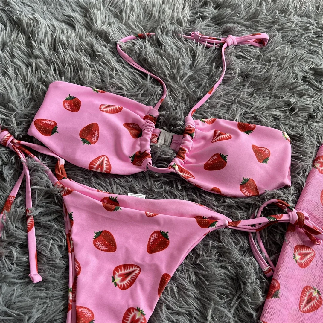 New With Sarong Printed Halter Bikini Female Swimsuit Women Swimwear Three-pieces Bikini set Bather Bathing Suit Swim Lady V4156