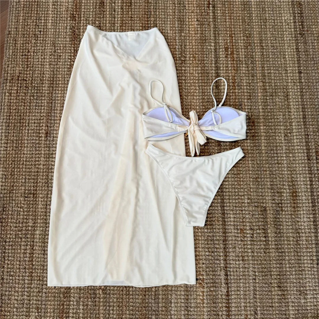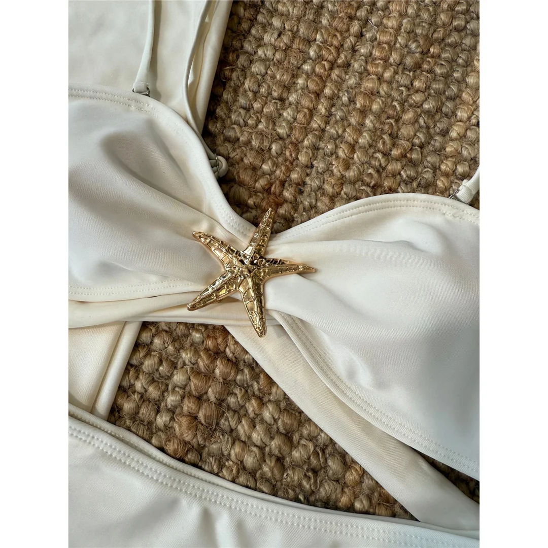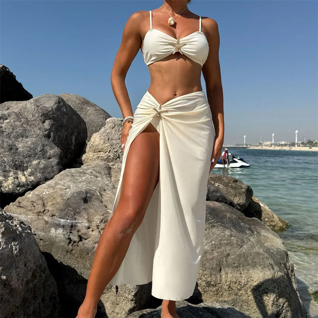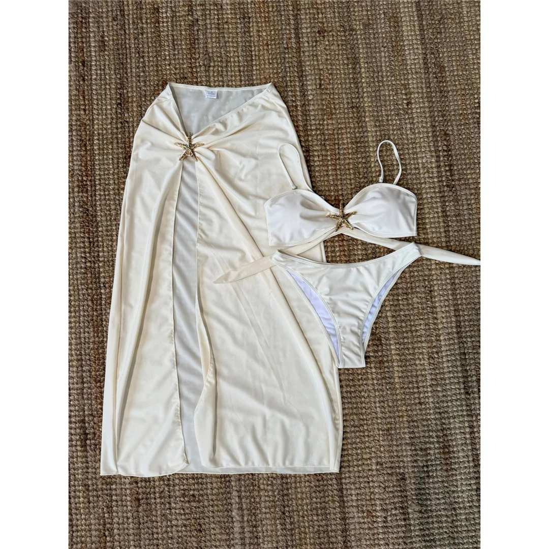 New With Skirt Metal Star Bikini Women Swimwear Female Swimsuit Three-pieces Bikini set Brazilian Bather Bathing Suit Swim V7104