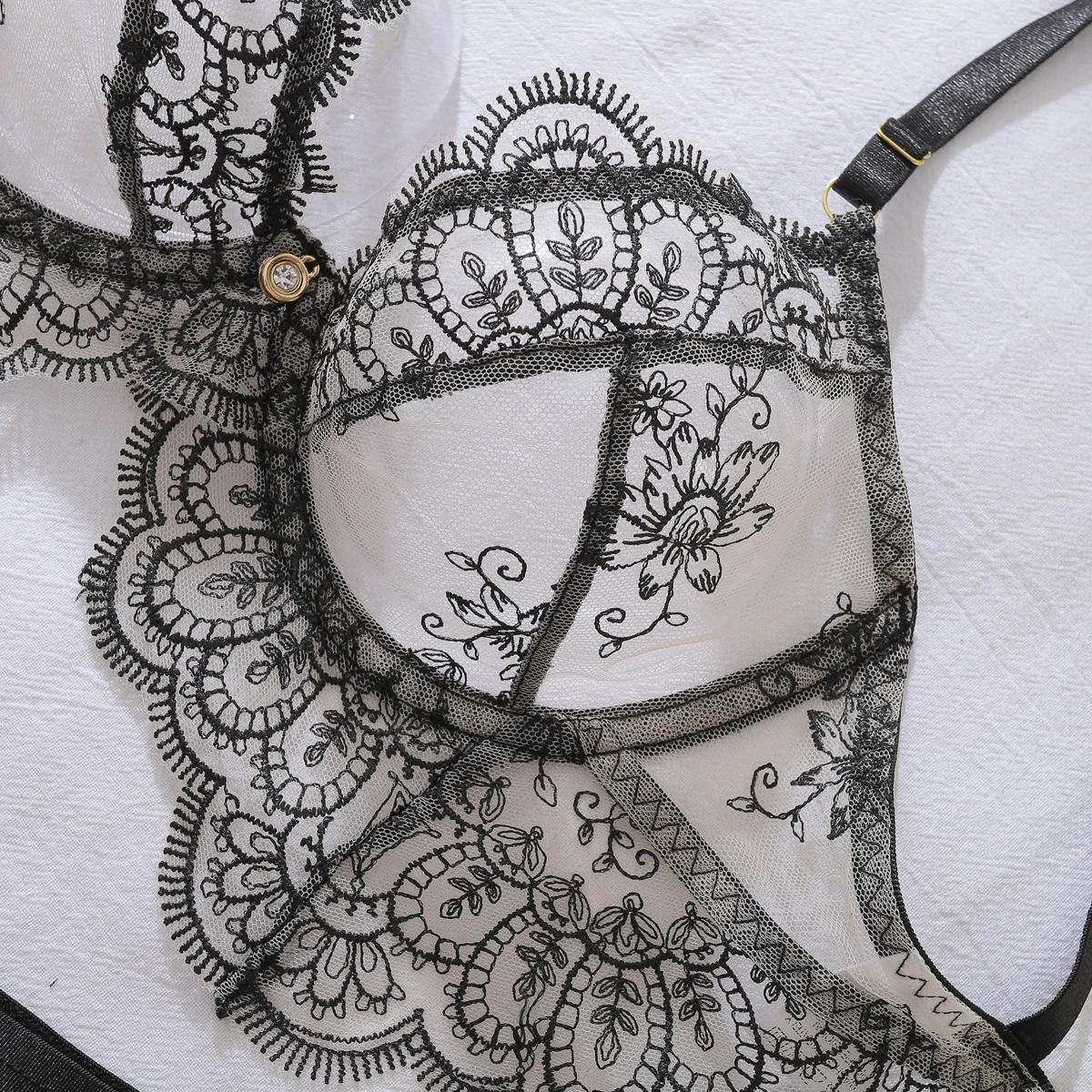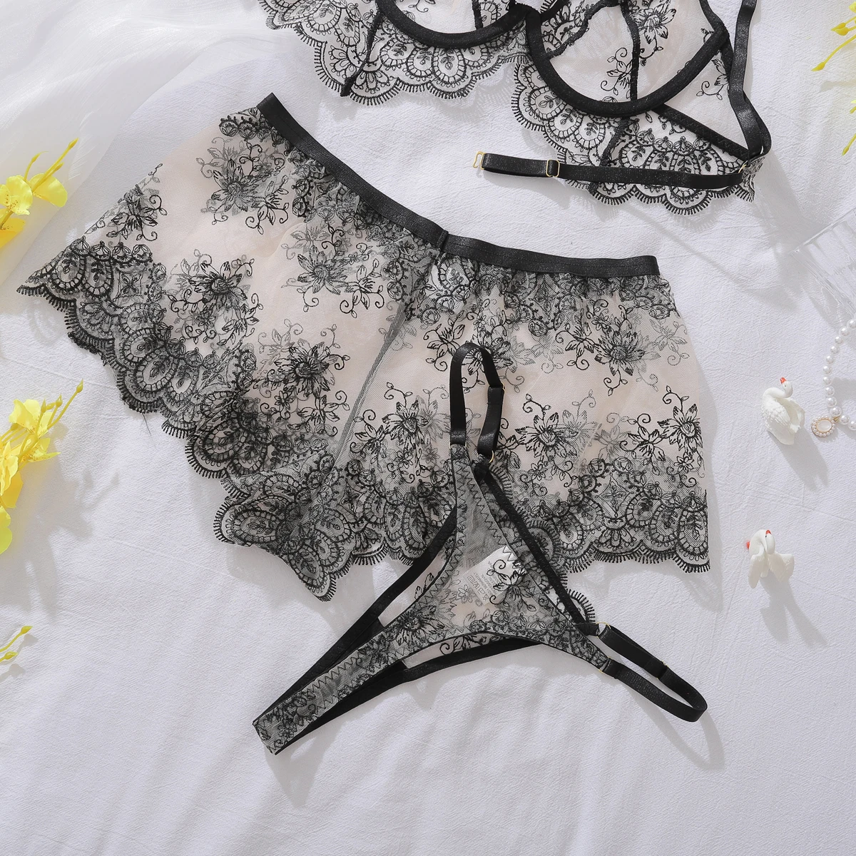 New Women’s Close Fitting Sexy Underwear Fashion Lace Embroidery Perspective Home Clothing Sexy Underwear 3-Piece Set