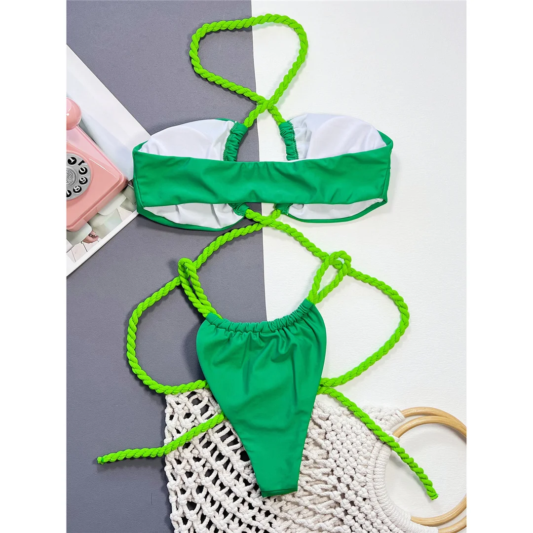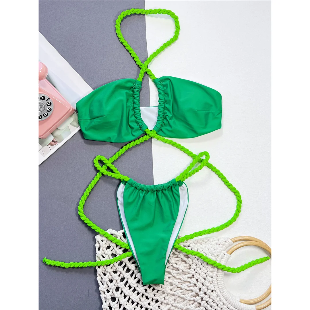 New Wrap Around Halter High Leg Cut Bikini Female Swimsuit Women Swimwear Two-pieces Bikini set Bather Bathing Suit Swim V4750
