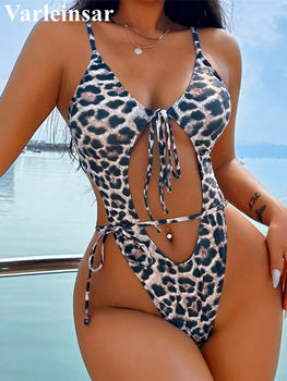 Leopard V Neck DIY Wrap Around One Piece Swimsuit Women Swimwear Female Bather Leopard High Cut Bathing Suit Swim Monokini V742