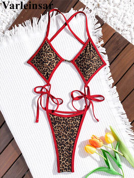 S – XL Leopard Extreme String Mini Micro Thong One Piece Swimsuit Women Swimwear Female Padded Bather Bathing Suit Swim V7067
